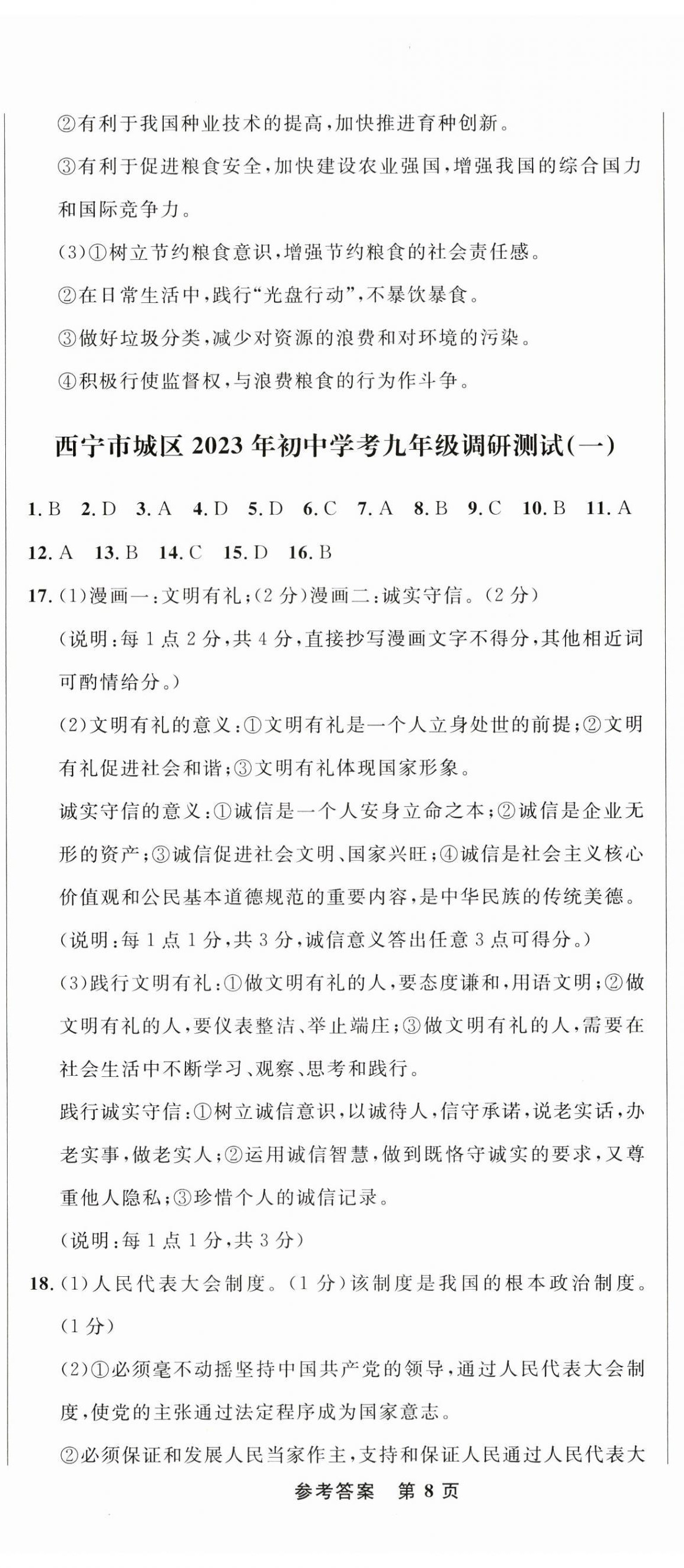 注:目前有些书本章节名称可能整理的还不是很完善,但都是按照顺序排列的,请同学们按照顺序仔细查找。练习册 2024年青海中考全真模拟试卷道德与法治 答案主要是用来给同学们做完题方便对答案用的,请勿直接抄袭。