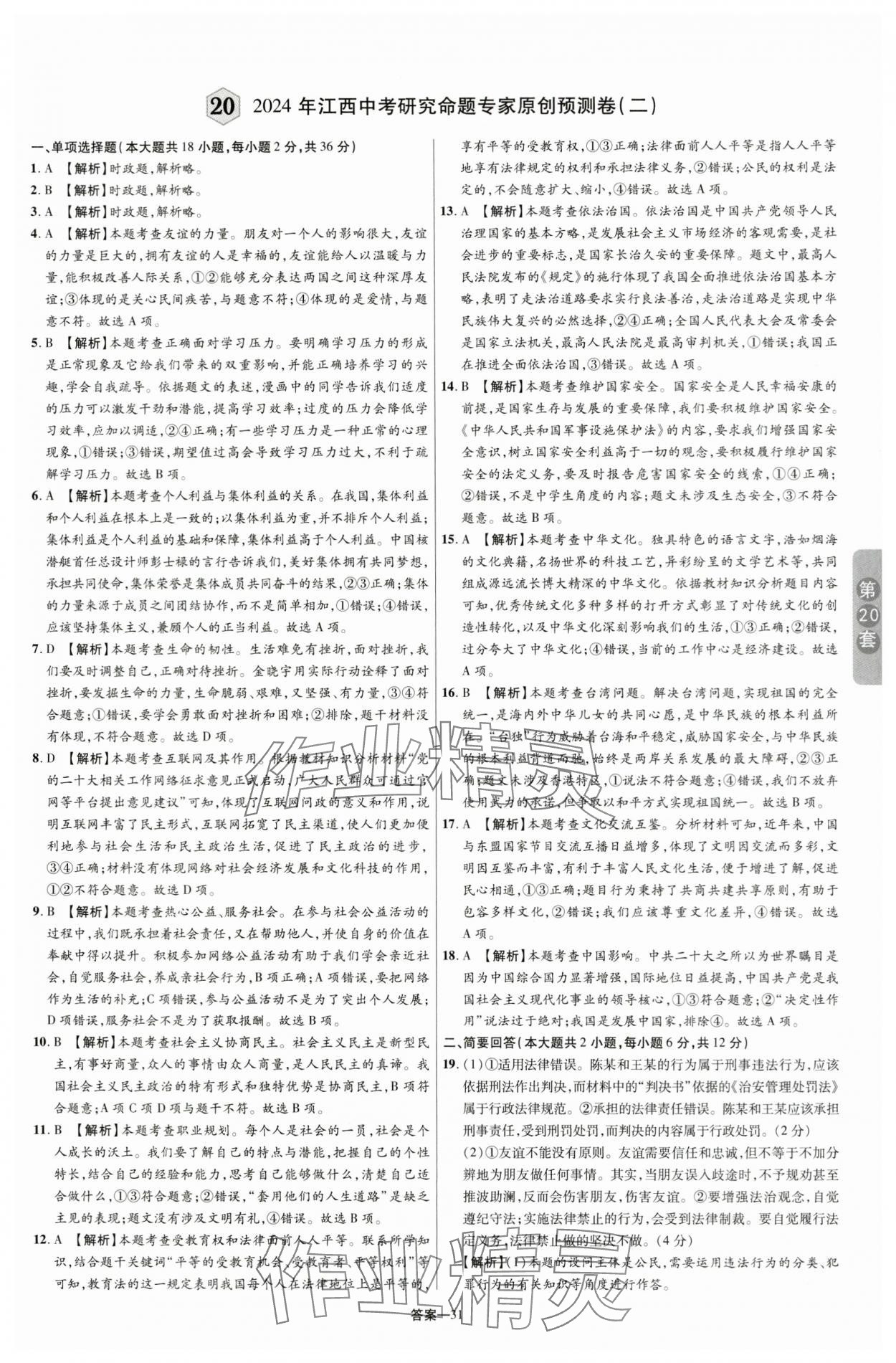 2024年领扬中考卷道德与法治江西专版
