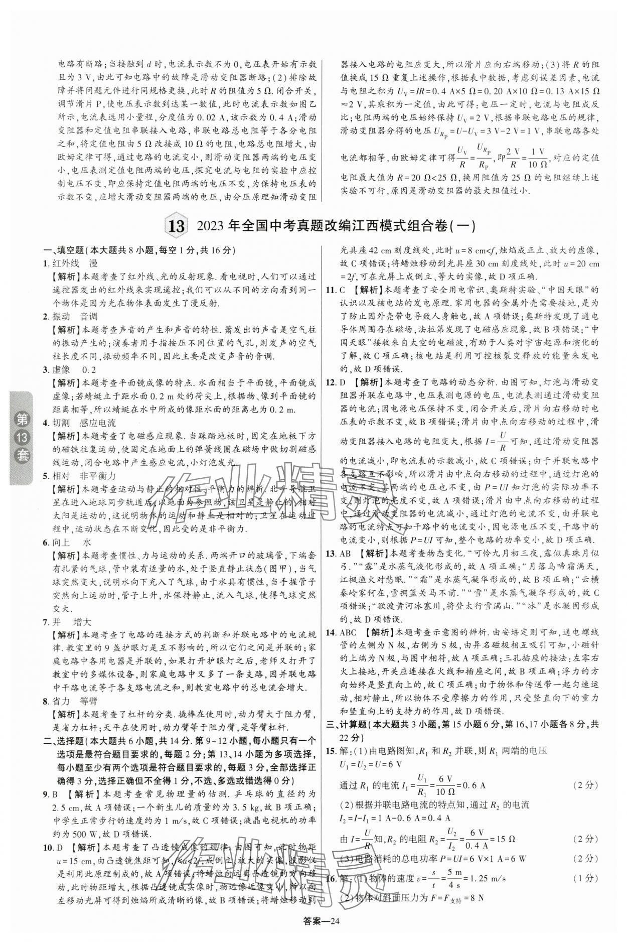 注:目前有些书本章节名称可能整理的还不是很完善,但都是按照顺序排列的,请同学们按照顺序仔细查找。练习册 2024年领扬中考卷物理江西专版 答案主要是用来给同学们做完题方便对答案用的,请勿直接抄袭。
