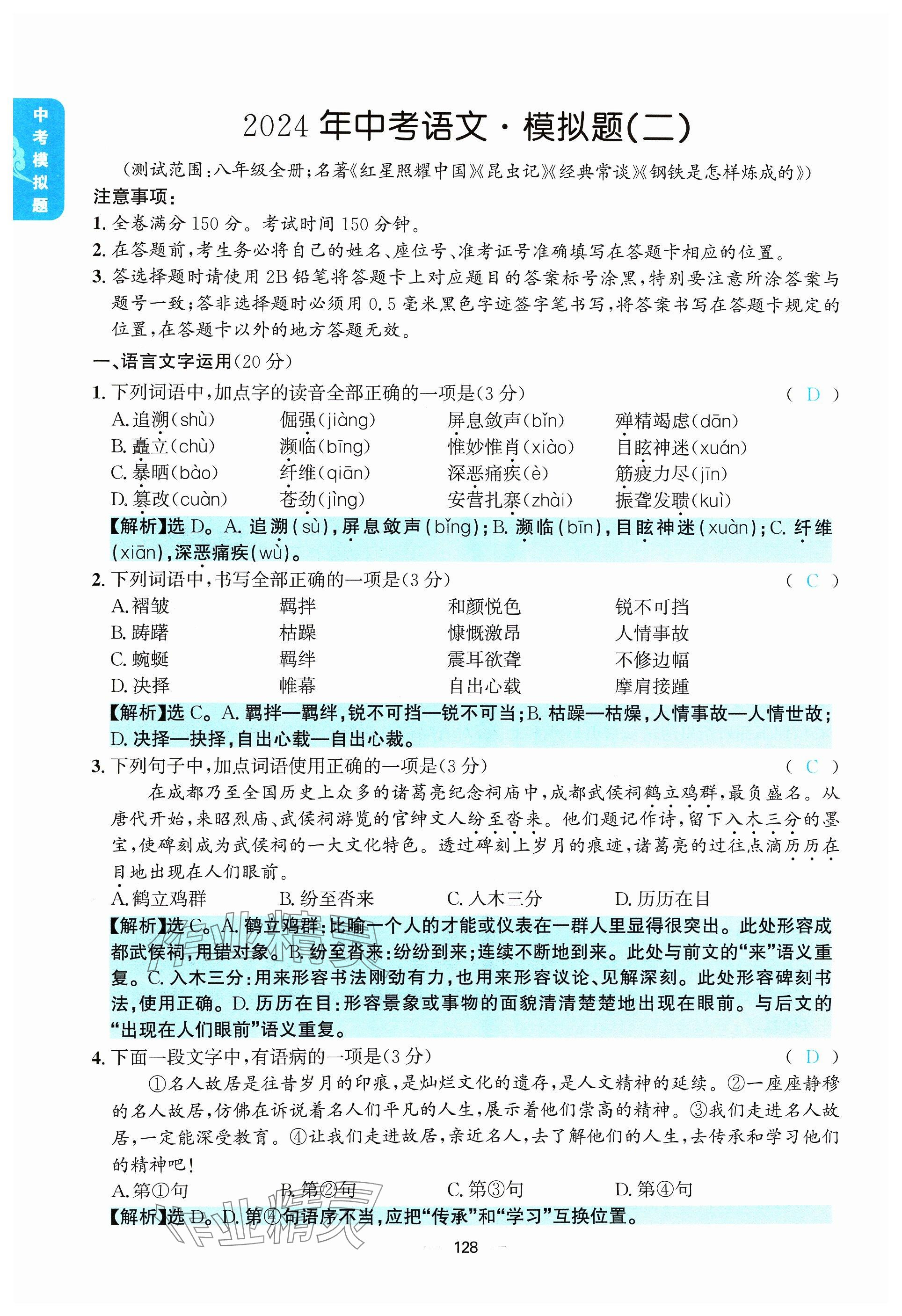 注:目前有些书本章节名称可能整理的还不是很完善,但都是按照顺序排列的,请同学们按照顺序仔细查找。练习册 2024年学程先锋中考总复习语文 答案主要是用来给同学们做完题方便对答案用的,请勿直接抄袭。