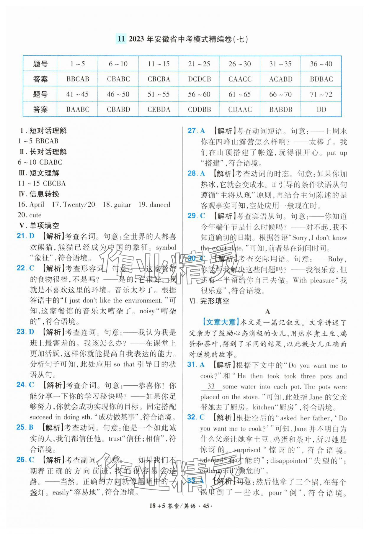 注:目前有些书本章节名称可能整理的还不是很完善,但都是按照顺序排列的,请同学们按照顺序仔细查找。练习册 2024年中考试题精编安徽师范大学出版社英语中考安徽专版 答案主要是用来给同学们做完题方便对答案用的,请勿直接抄袭。