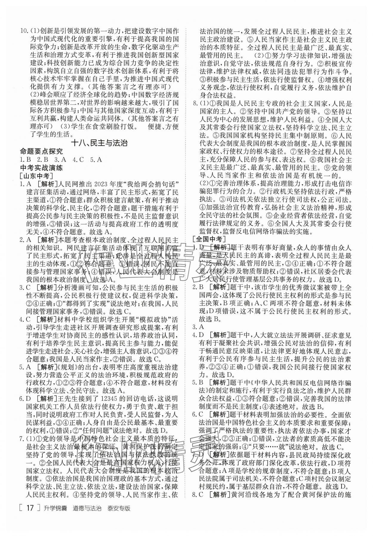 注:目前有些书本章节名称可能整理的还不是很完善,但都是按照顺序排列的,请同学们按照顺序仔细查找。练习册 2024年升学锦囊道德与法治泰安专版 答案主要是用来给同学们做完题方便对答案用的,请勿直接抄袭。