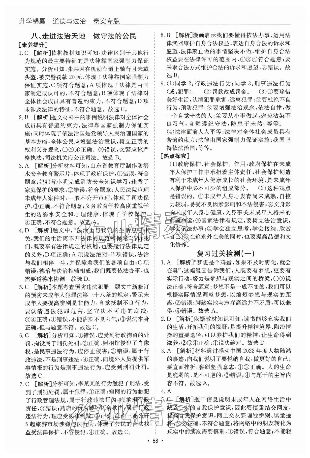 注:目前有些书本章节名称可能整理的还不是很完善,但都是按照顺序排列的,请同学们按照顺序仔细查找。练习册 2024年升学锦囊道德与法治泰安专版 答案主要是用来给同学们做完题方便对答案用的,请勿直接抄袭。
