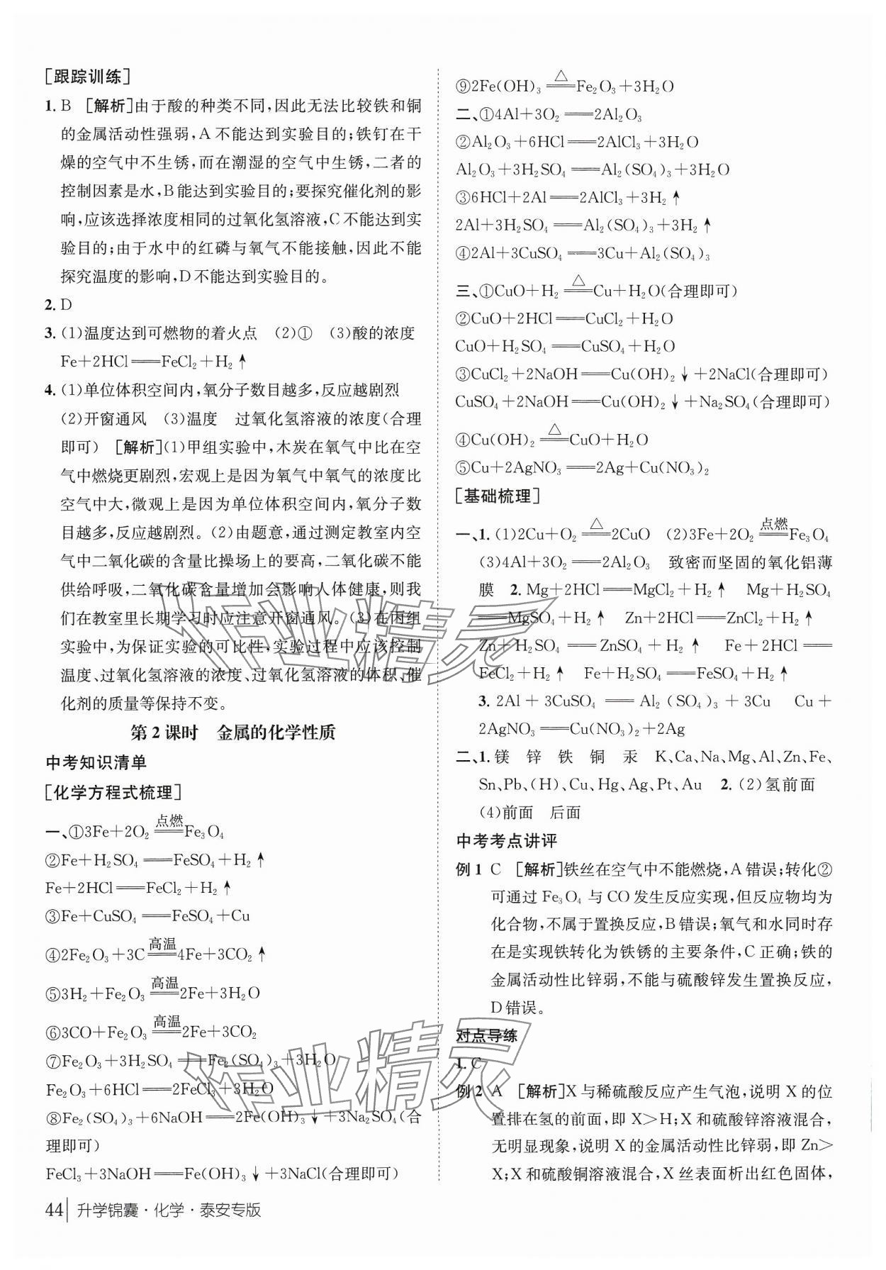注:目前有些书本章节名称可能整理的还不是很完善,但都是按照顺序排列的,请同学们按照顺序仔细查找。练习册 2024年升学锦囊化学泰安专版 答案主要是用来给同学们做完题方便对答案用的,请勿直接抄袭。