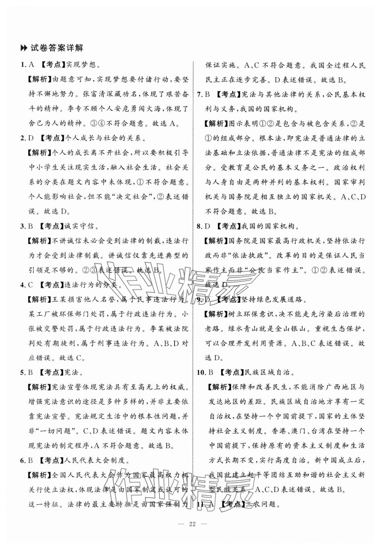 2024年中考备考指南广西2年真题1年模拟试卷道德与法治广西专版