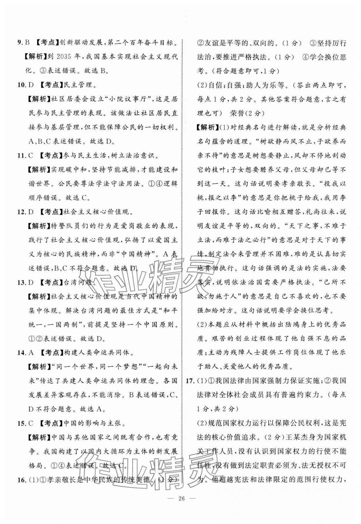 2024年中考备考指南广西2年真题1年模拟试卷道德与法治广西专版
