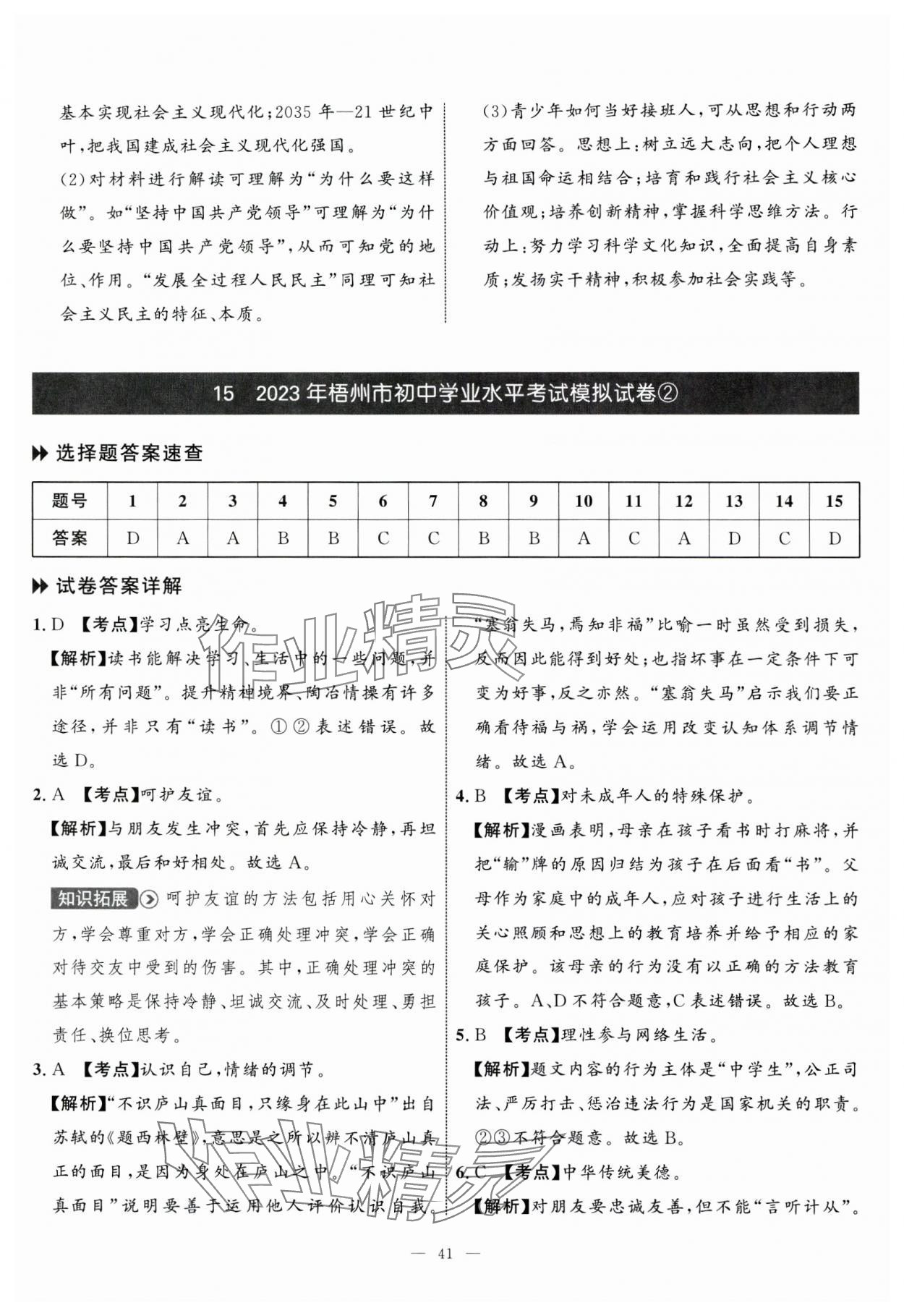 2024年中考备考指南广西2年真题1年模拟试卷道德与法治广西专版