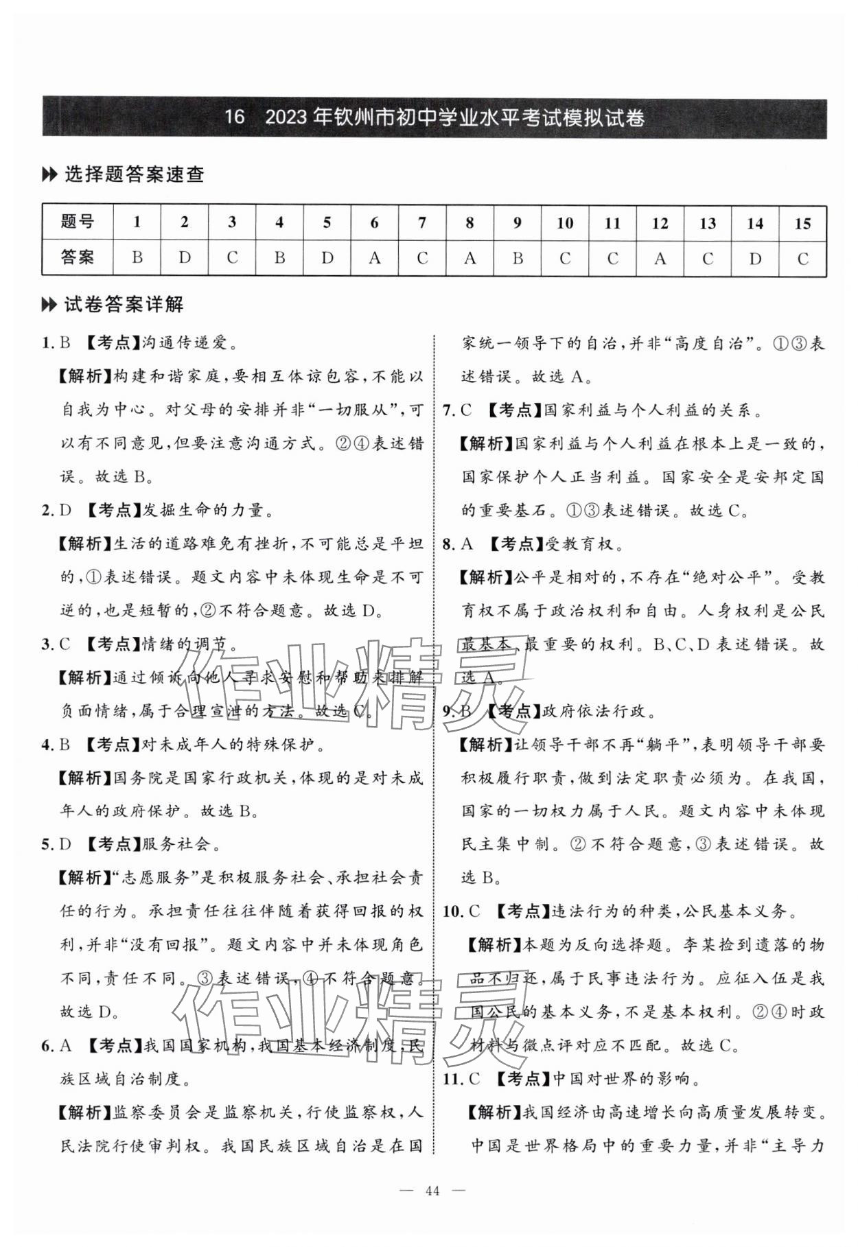 2024年中考备考指南广西2年真题1年模拟试卷道德与法治广西专版