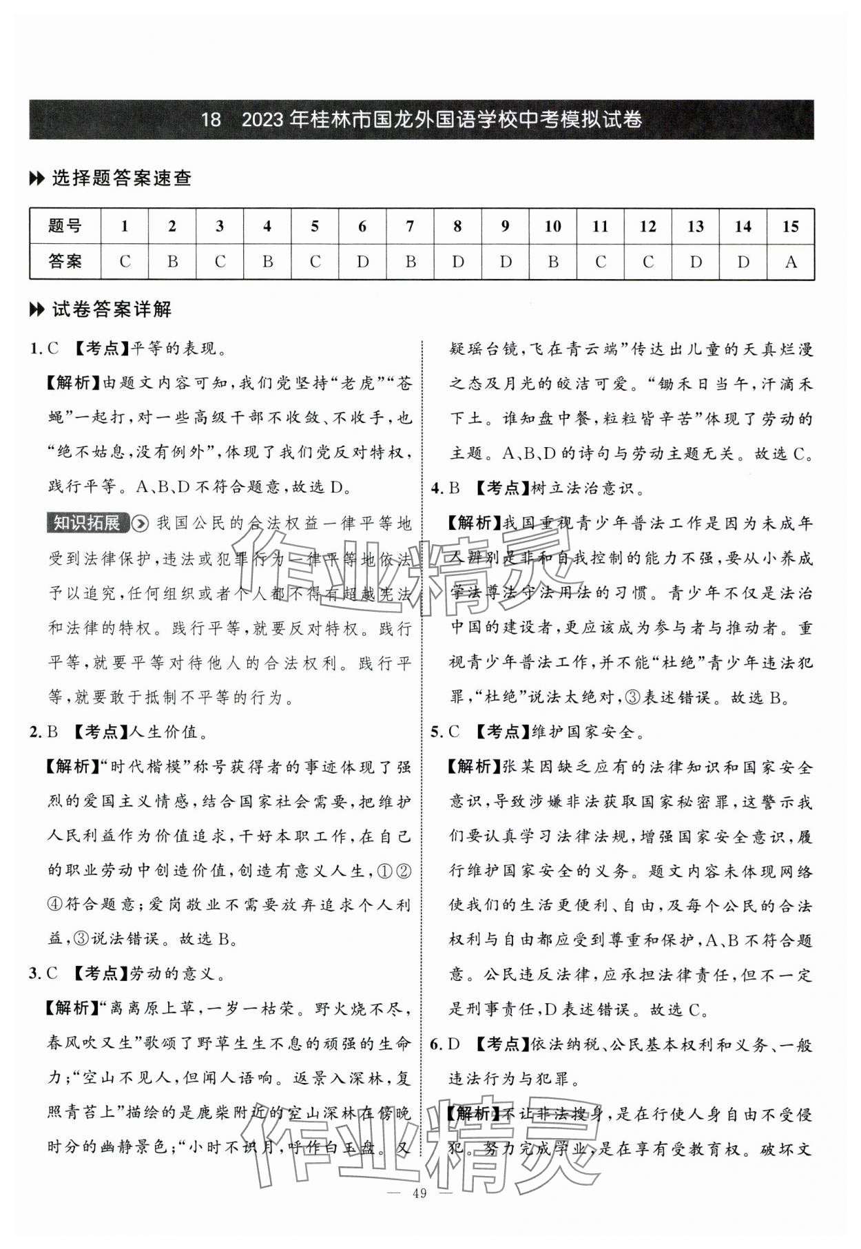 注:目前有些书本章节名称可能整理的还不是很完善,但都是按照顺序排列的,请同学们按照顺序仔细查找。练习册 2024年中考备考指南广西2年真题1年模拟试卷道德与法治广西专版 答案主要是用来给同学们做完题方便对答案用的,请勿直接抄袭。
