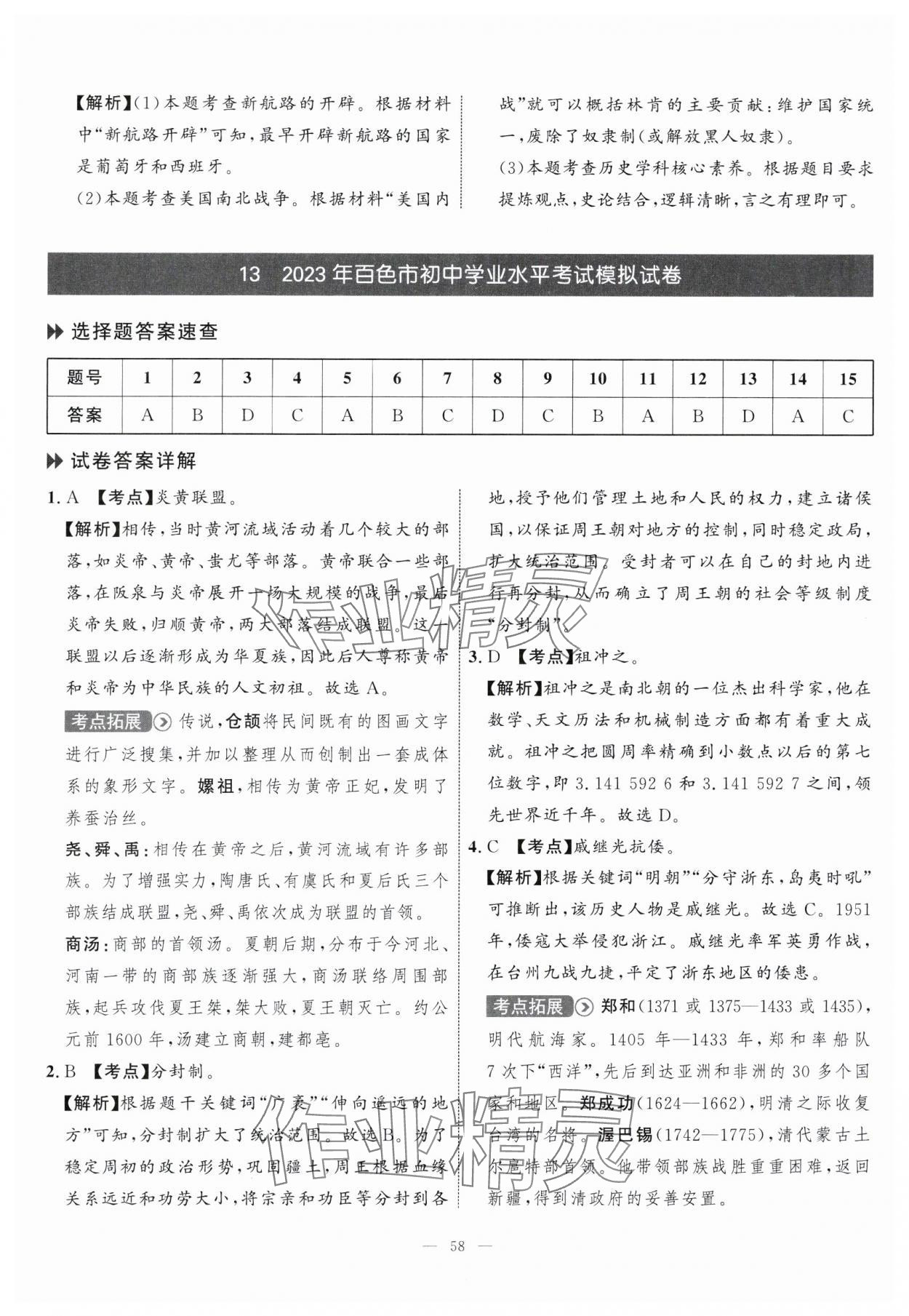 2024年中考备考指南广西2年真题1年模拟试卷历史广西专版