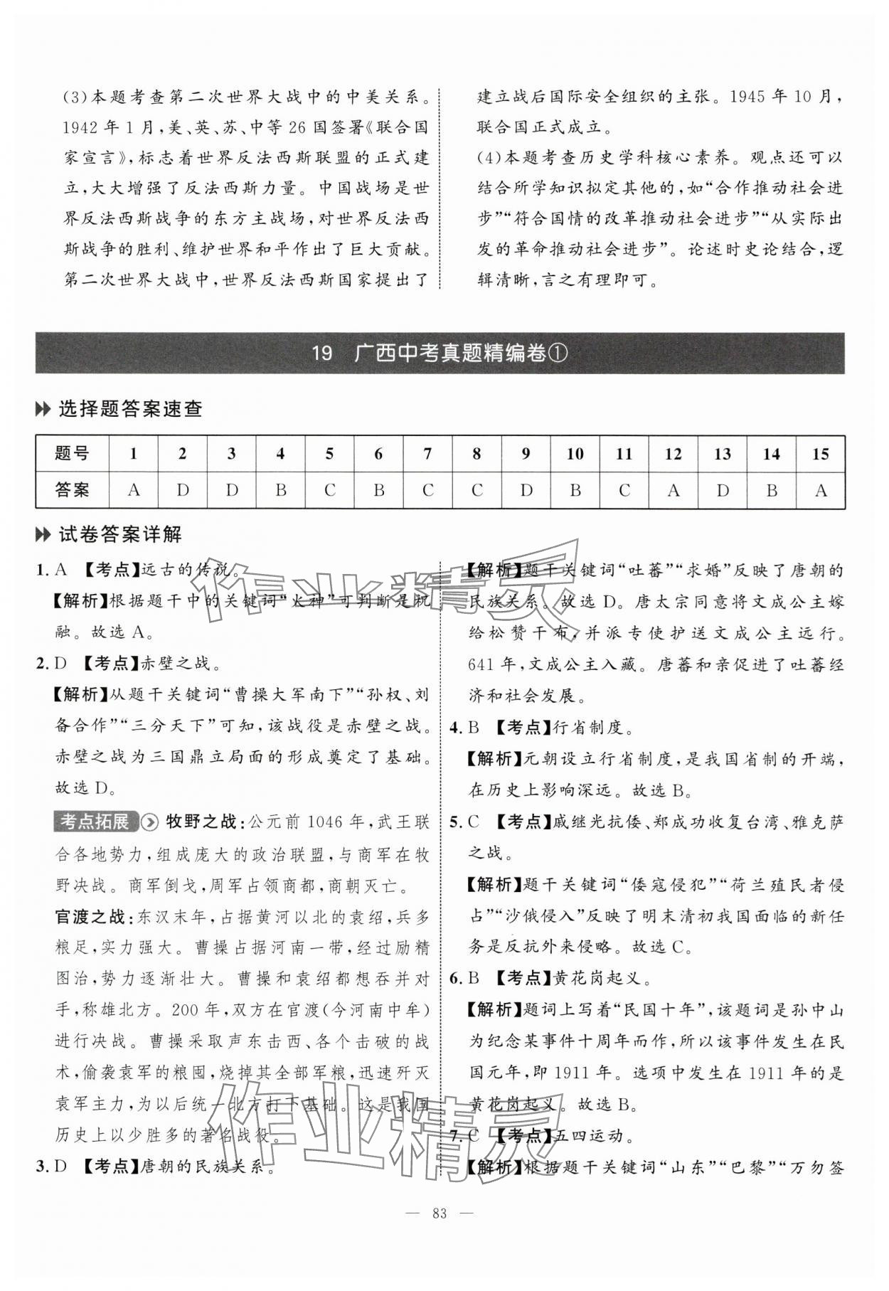 2024年中考备考指南广西2年真题1年模拟试卷历史广西专版
