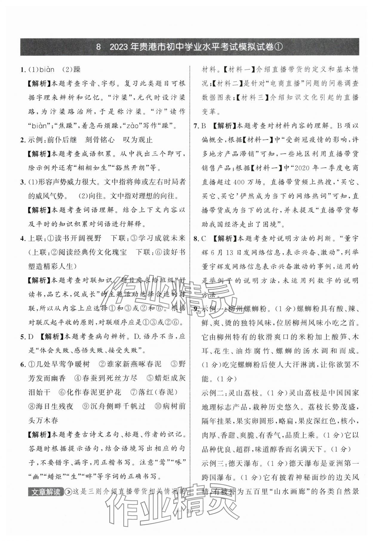 注:目前有些书本章节名称可能整理的还不是很完善,但都是按照顺序排列的,请同学们按照顺序仔细查找。练习册 2024年中考备考指南广西2年真题1年模拟试卷语文广西专版 答案主要是用来给同学们做完题方便对答案用的,请勿直接抄袭。