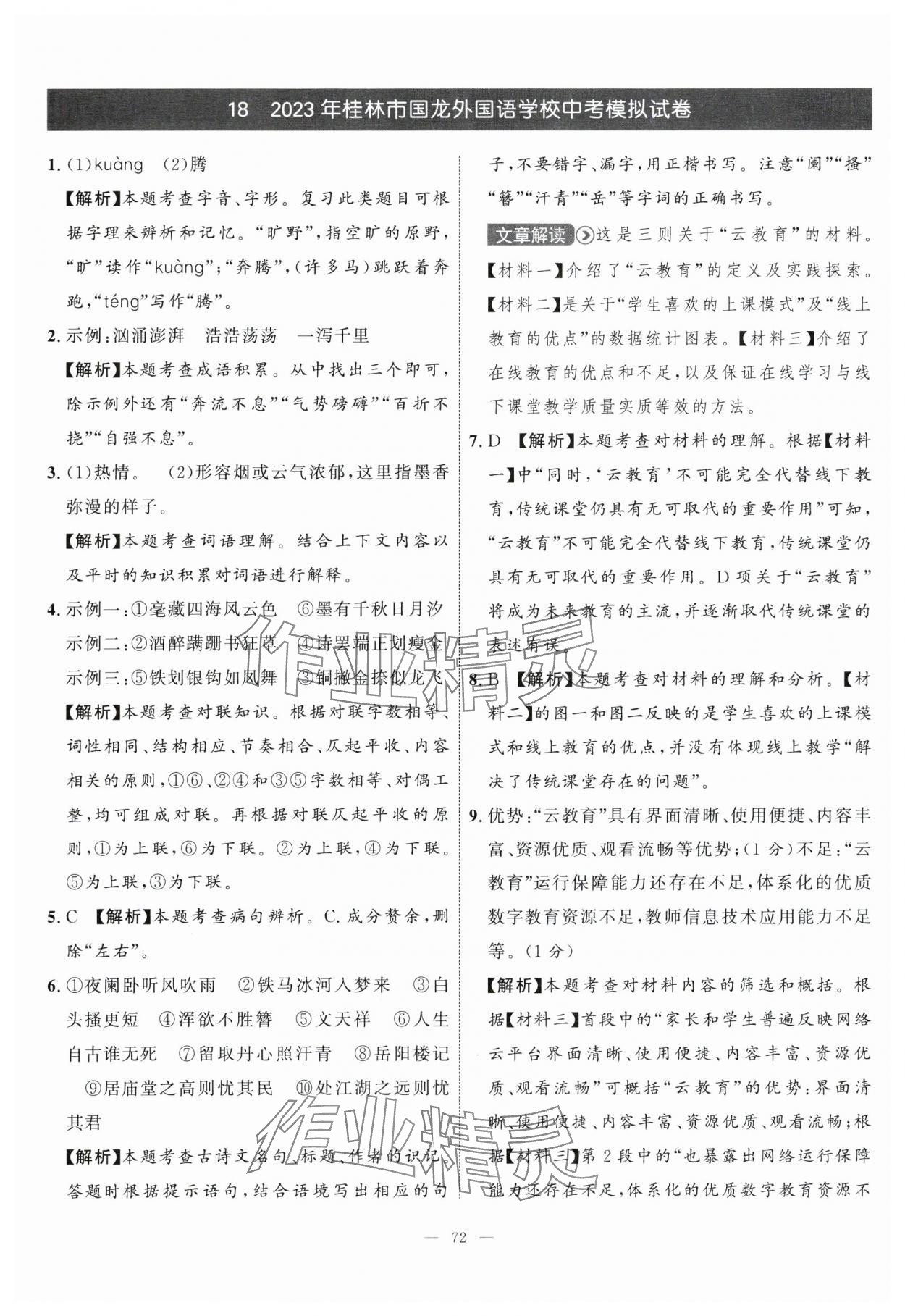 注:目前有些书本章节名称可能整理的还不是很完善,但都是按照顺序排列的,请同学们按照顺序仔细查找。练习册 2024年中考备考指南广西2年真题1年模拟试卷语文广西专版 答案主要是用来给同学们做完题方便对答案用的,请勿直接抄袭。
