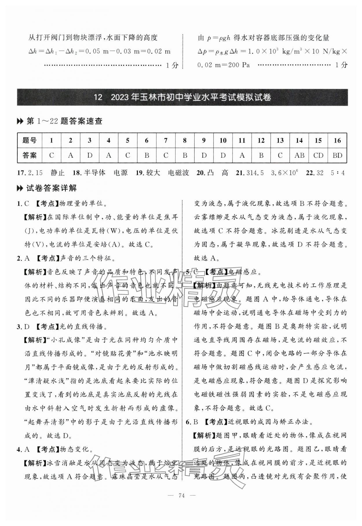 2024年中考备考指南广西2年真题1年模拟试卷物理广西专版