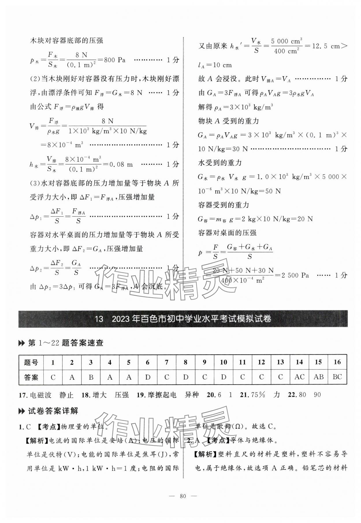 2024年中考备考指南广西2年真题1年模拟试卷物理广西专版