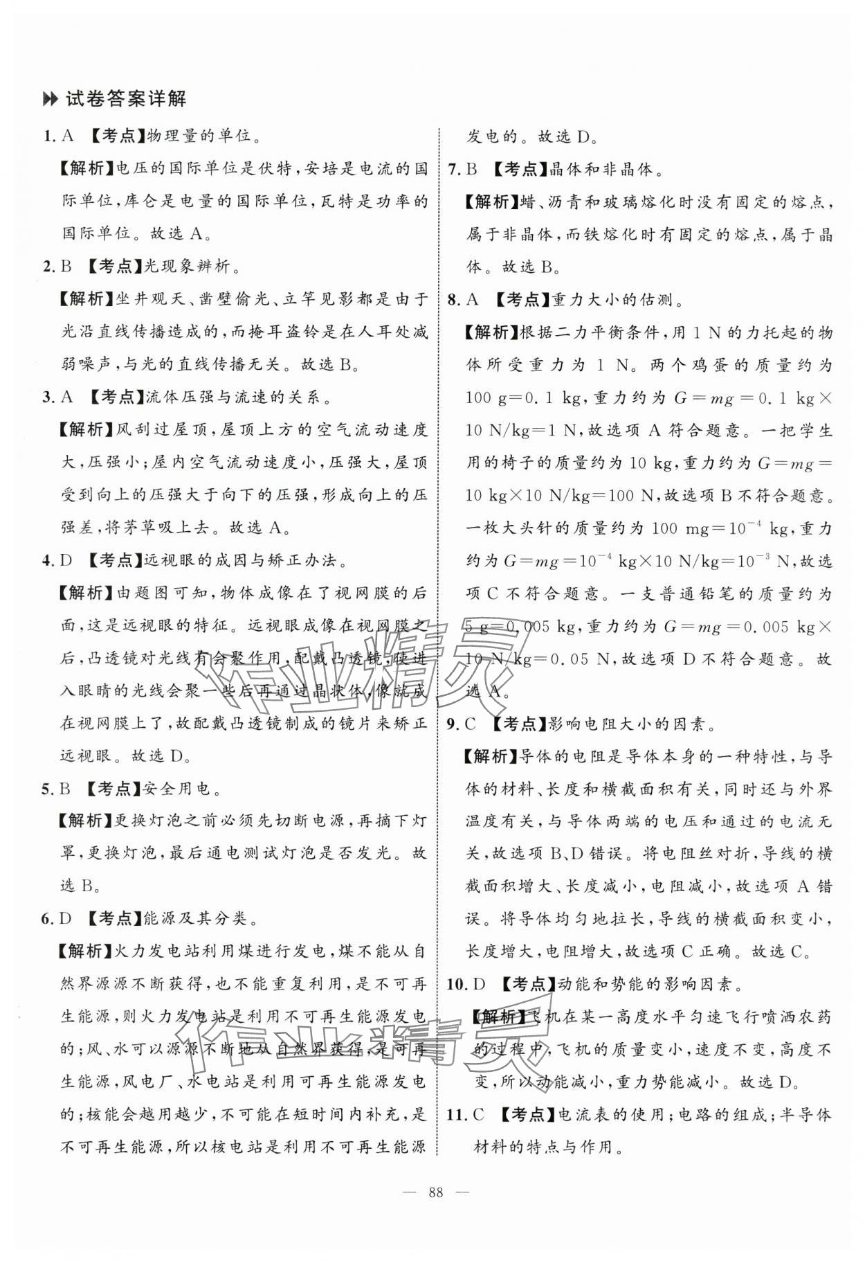 2024年中考备考指南广西2年真题1年模拟试卷物理广西专版