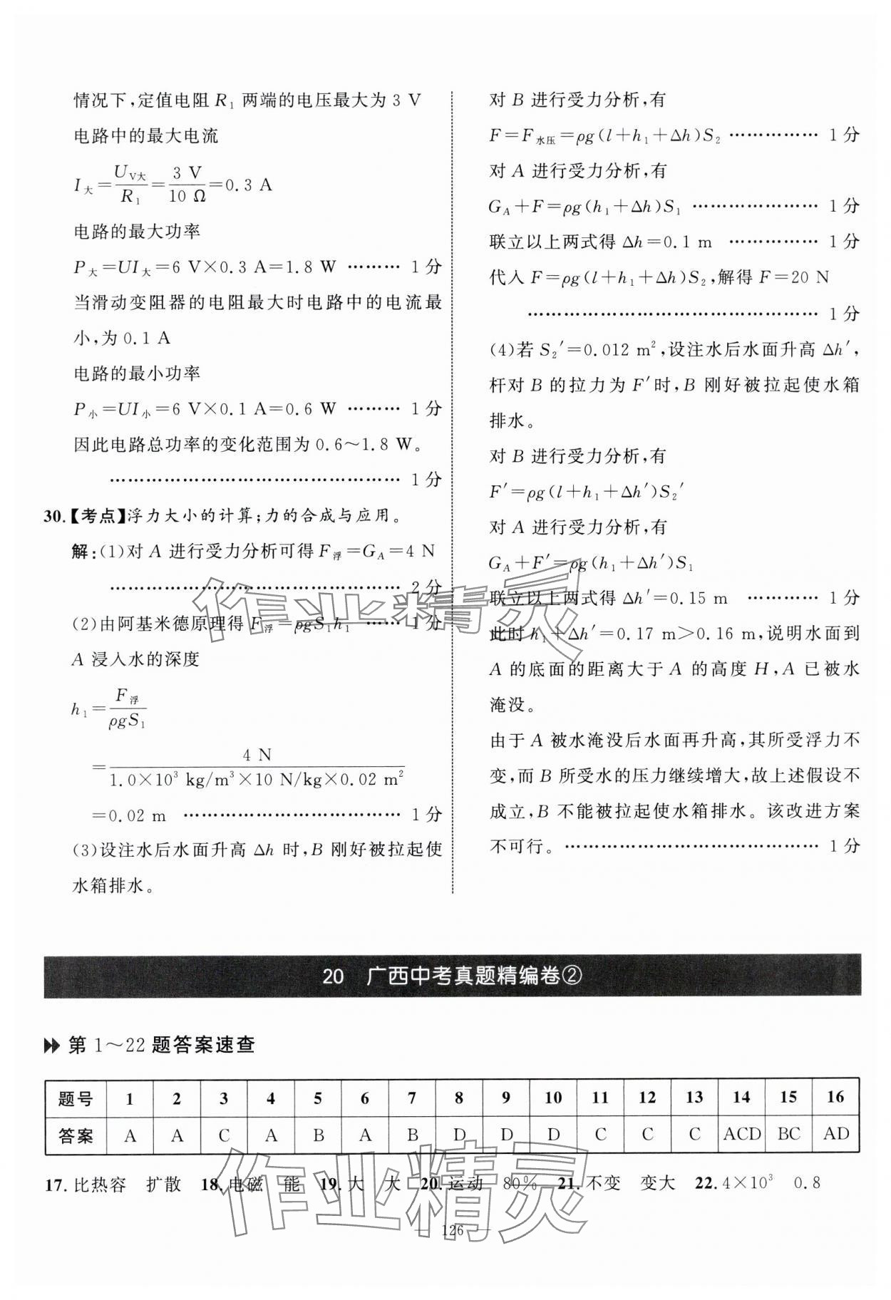 2024年中考备考指南广西2年真题1年模拟试卷物理广西专版