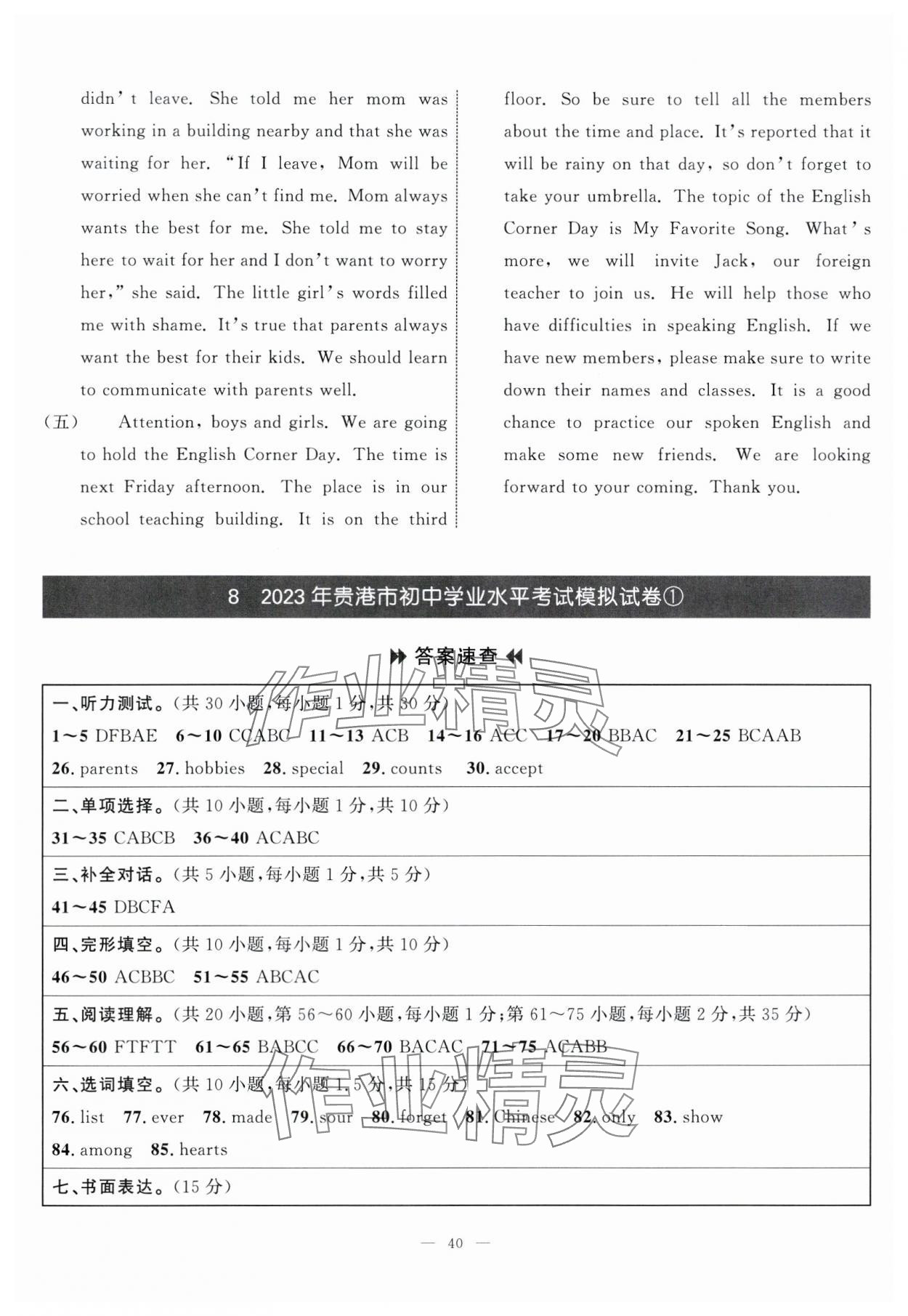 注:目前有些书本章节名称可能整理的还不是很完善,但都是按照顺序排列的,请同学们按照顺序仔细查找。练习册 2024年中考备考指南广西2年真题1年模拟试卷英语广西专版 答案主要是用来给同学们做完题方便对答案用的,请勿直接抄袭。
