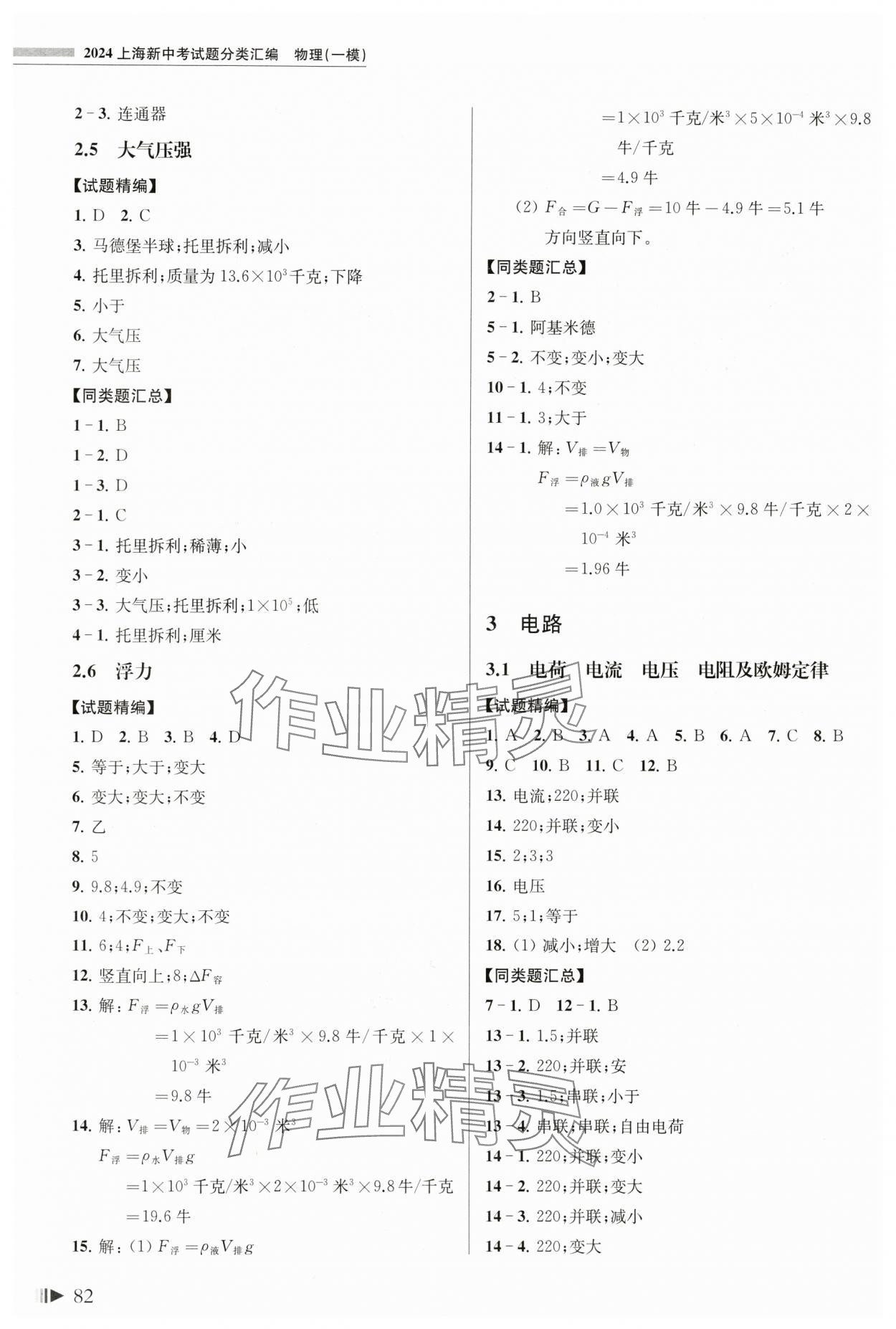 注:目前有些书本章节名称可能整理的还不是很完善,但都是按照顺序排列的,请同学们按照顺序仔细查找。练习册 2024年上海新中考试题分类汇编物理一模 答案主要是用来给同学们做完题方便对答案用的,请勿直接抄袭。