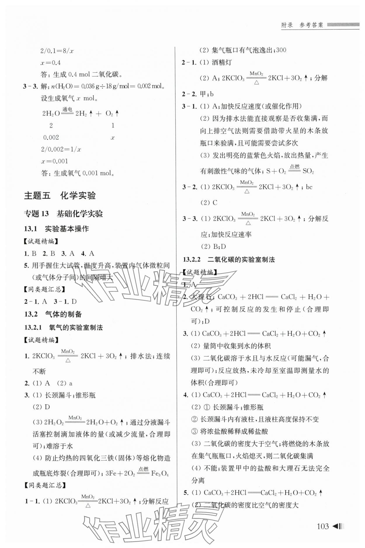 注:目前有些书本章节名称可能整理的还不是很完善,但都是按照顺序排列的,请同学们按照顺序仔细查找。练习册 2024年上海新中考试题分类汇编化学一模 答案主要是用来给同学们做完题方便对答案用的,请勿直接抄袭。