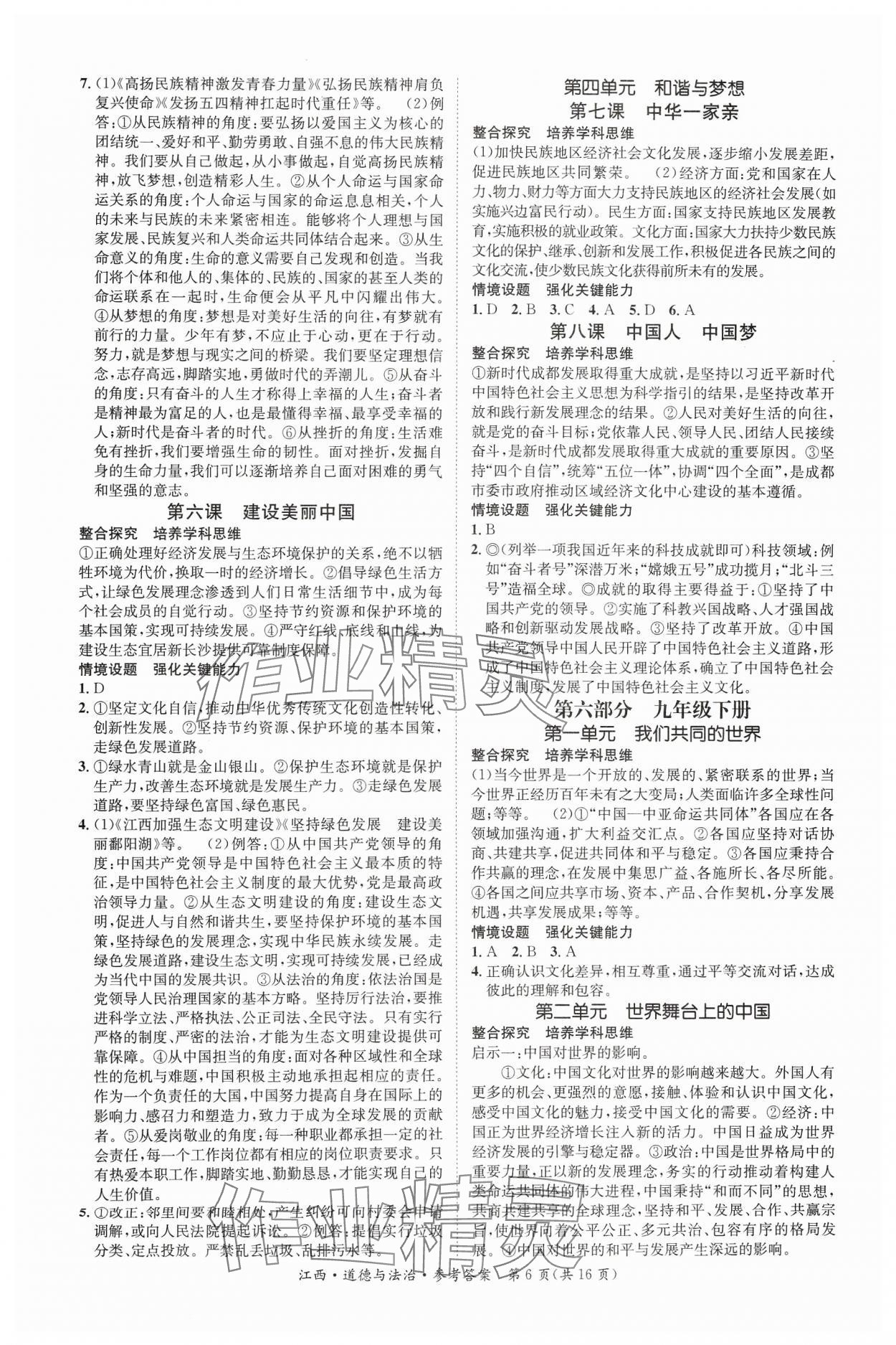注:目前有些书本章节名称可能整理的还不是很完善,但都是按照顺序排列的,请同学们按照顺序仔细查找。练习册 2024年中考2号道德与法治江西专版 答案主要是用来给同学们做完题方便对答案用的,请勿直接抄袭。