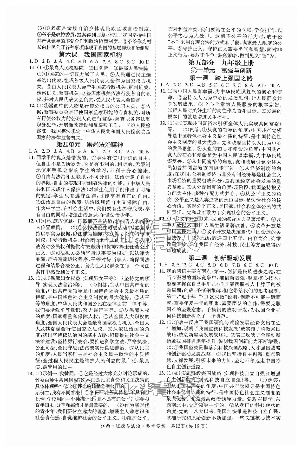 注:目前有些书本章节名称可能整理的还不是很完善,但都是按照顺序排列的,请同学们按照顺序仔细查找。练习册 2024年中考2号道德与法治江西专版 答案主要是用来给同学们做完题方便对答案用的,请勿直接抄袭。