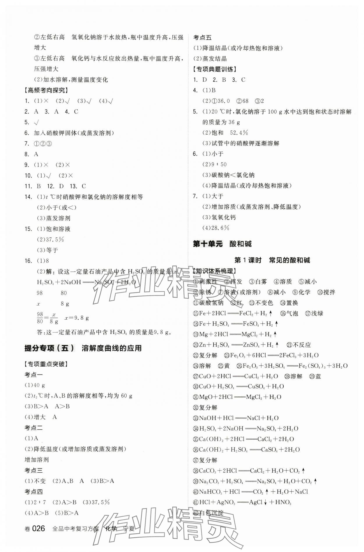 2024年全品中考复习方案化学宁夏专版