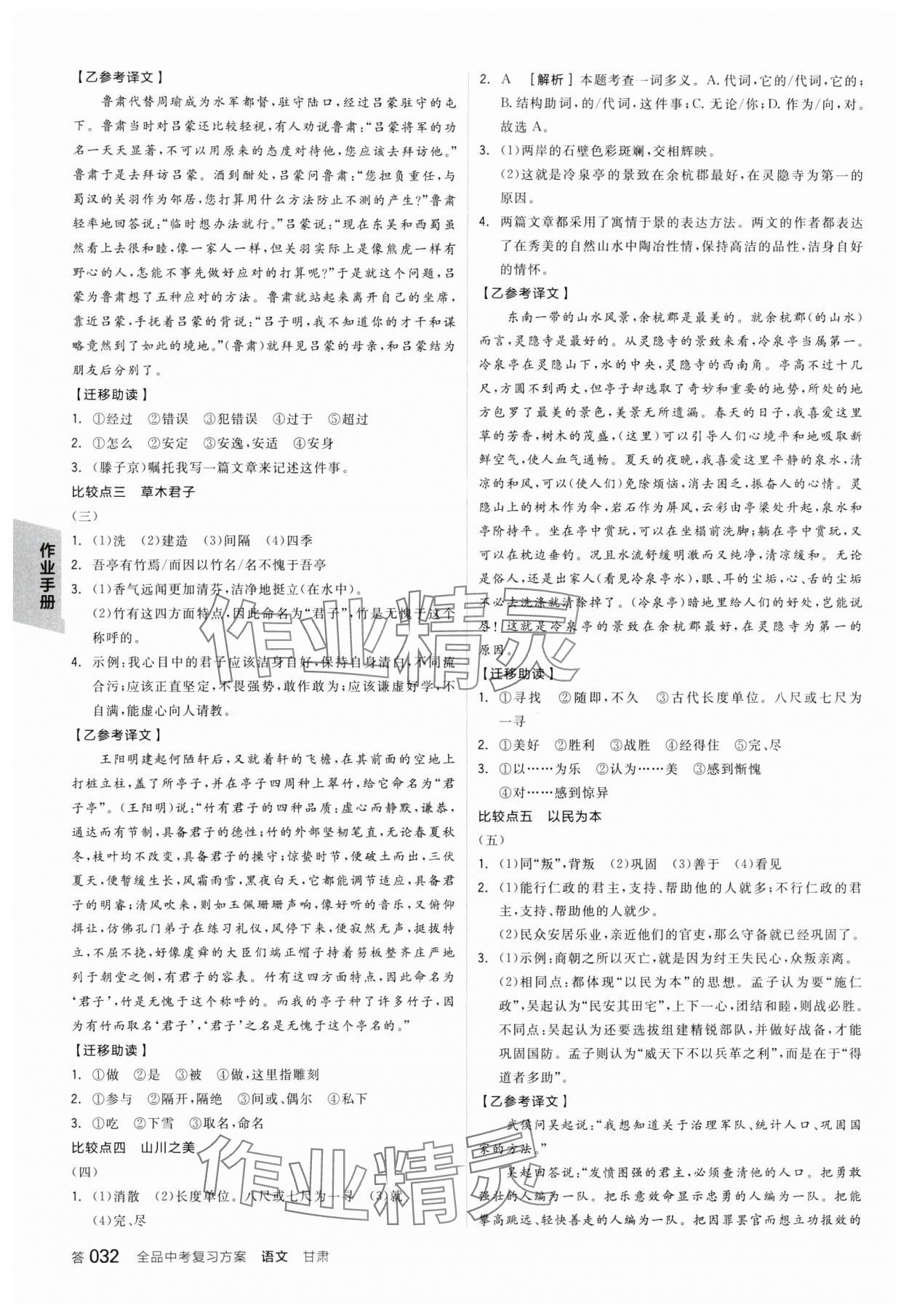 注:目前有些书本章节名称可能整理的还不是很完善,但都是按照顺序排列的,请同学们按照顺序仔细查找。练习册 2024年全品中考复习方案语文甘肃专版 答案主要是用来给同学们做完题方便对答案用的,请勿直接抄袭。