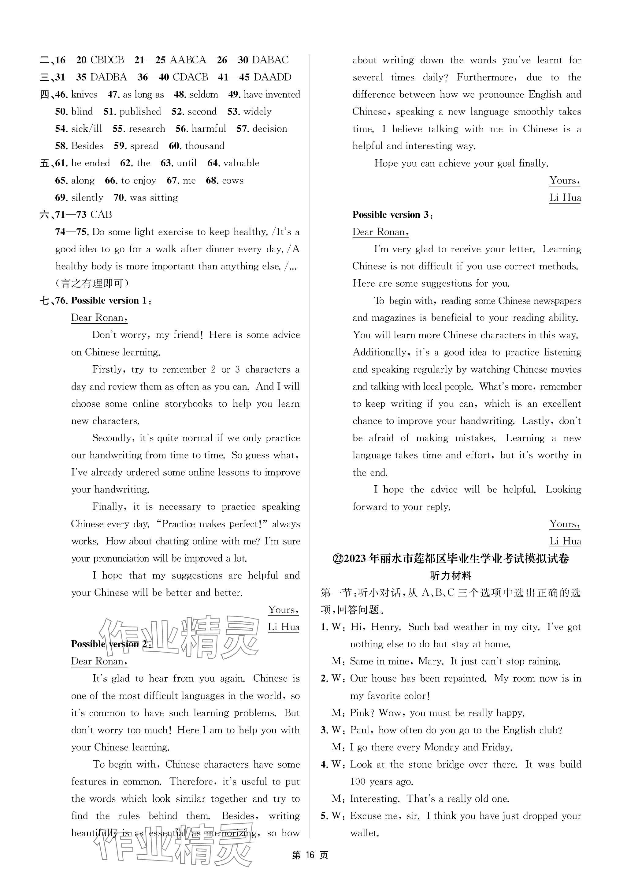 注:目前有些书本章节名称可能整理的还不是很完善,但都是按照顺序排列的,请同学们按照顺序仔细查找。练习册 2024年杭州名校中考模拟试卷汇编英语人教版 答案主要是用来给同学们做完题方便对答案用的,请勿直接抄袭。