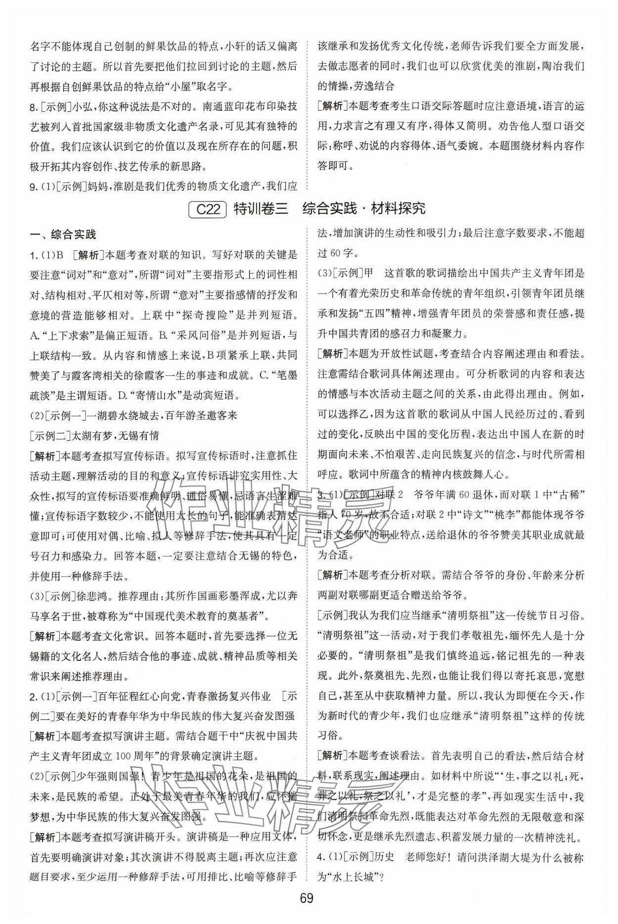 - 参考答案第69页