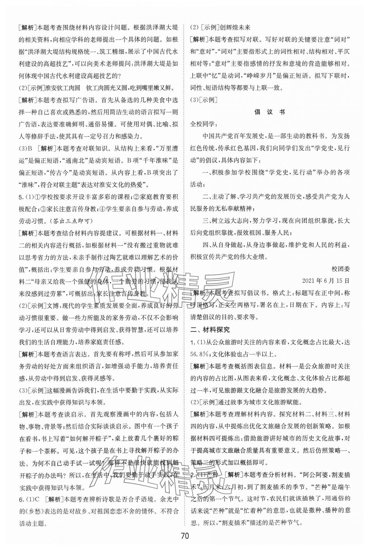 - 参考答案第70页