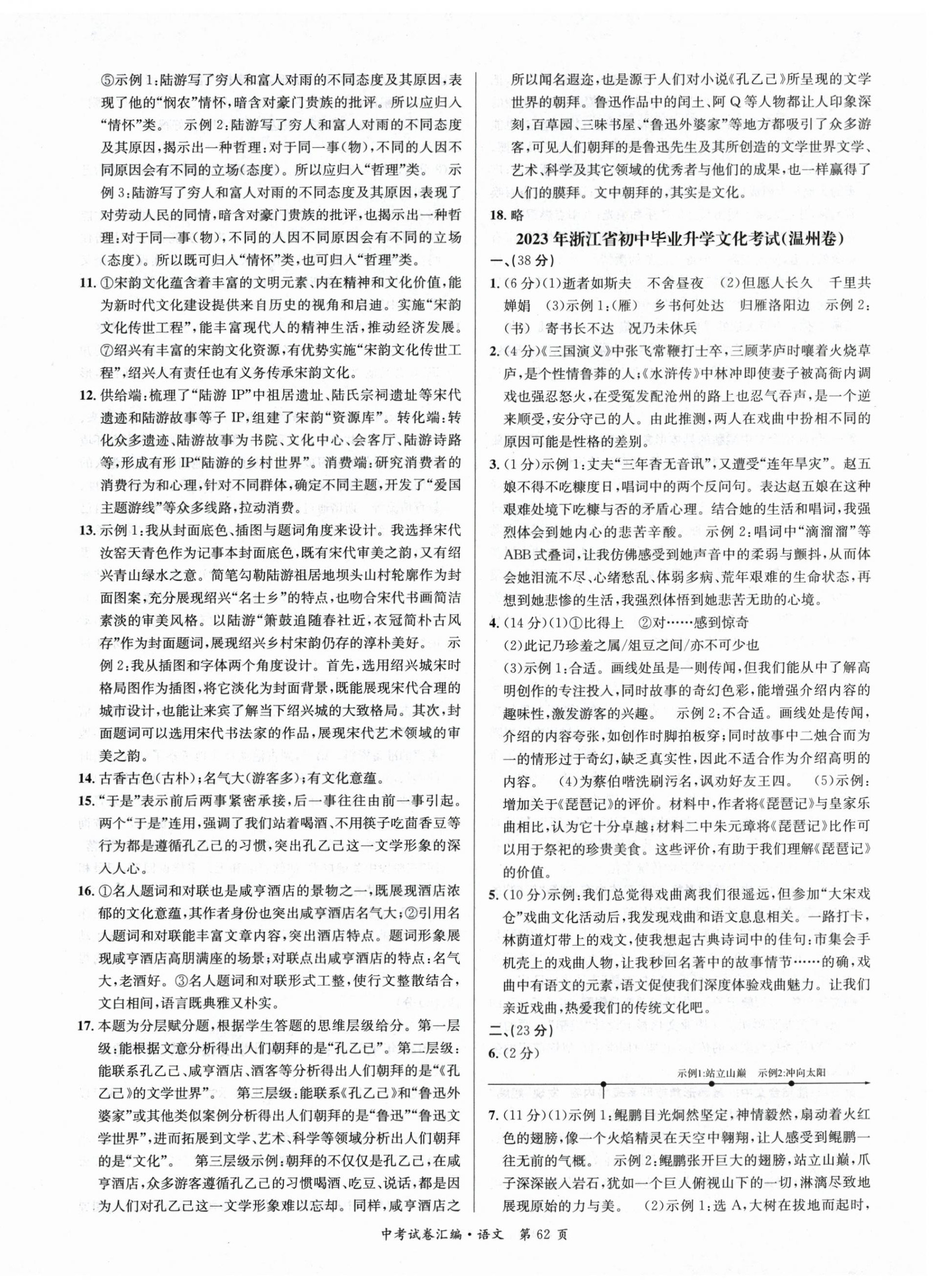 注:目前有些书本章节名称可能整理的还不是很完善,但都是按照顺序排列的,请同学们按照顺序仔细查找。练习册 2024年中考必备浙江省中考试题汇编语文 答案主要是用来给同学们做完题方便对答案用的,请勿直接抄袭。