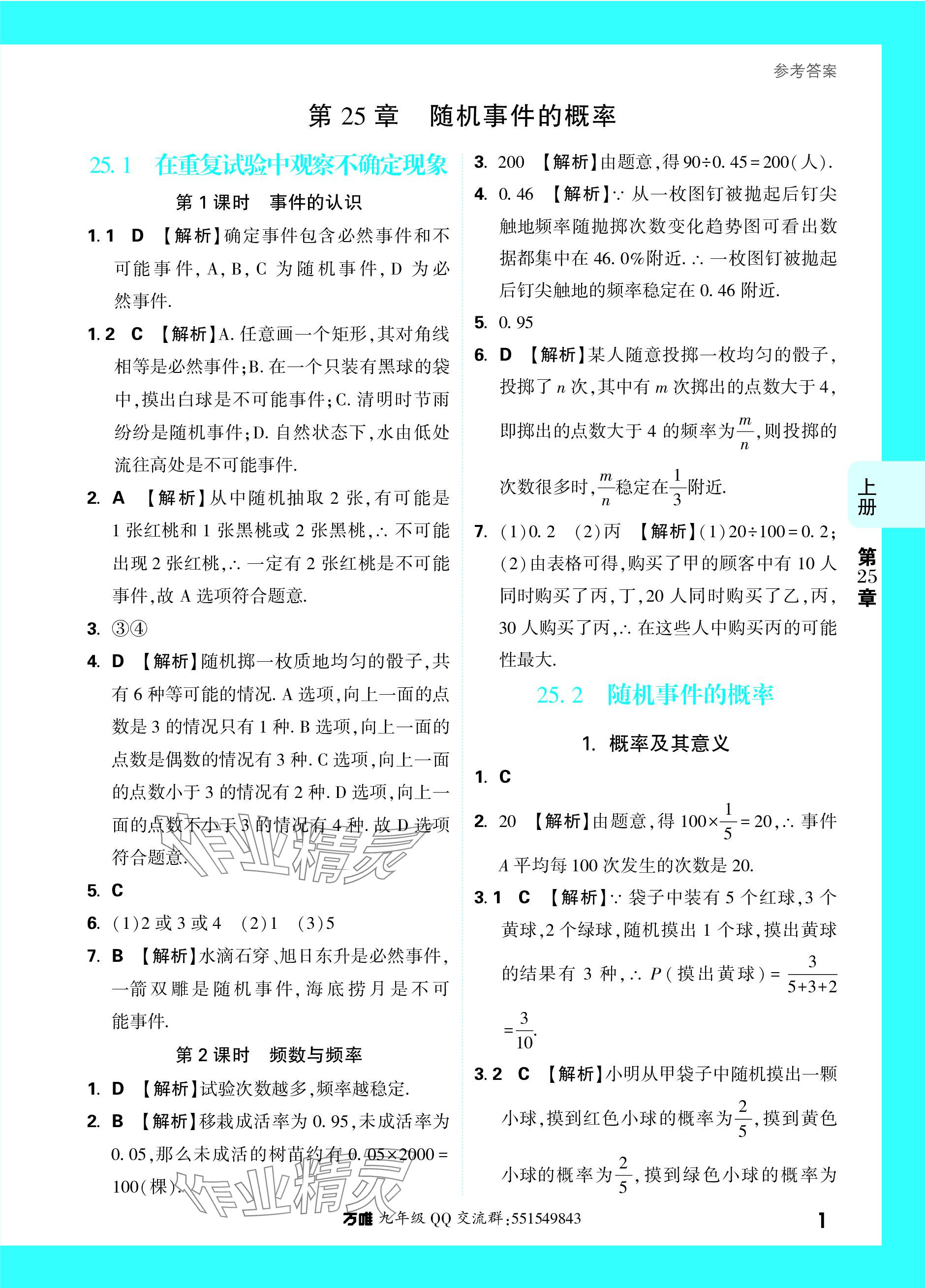 注:目前有些书本章节名称可能整理的还不是很完善,但都是按照顺序排列的,请同学们按照顺序仔细查找。练习册 2023年万唯中考基础题九年级数学全一册华师大版 答案主要是用来给同学们做完题方便对答案用的,请勿直接抄袭。