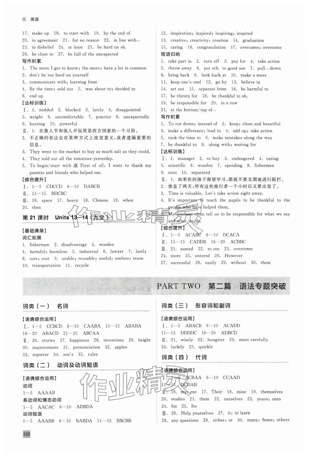 注:目前有些书本章节名称可能整理的还不是很完善,但都是按照顺序排列的,请同学们按照顺序仔细查找。练习册 2024年初中总复习手册北京出版社九年级英语全一册人教版 答案主要是用来给同学们做完题方便对答案用的,请勿直接抄袭。