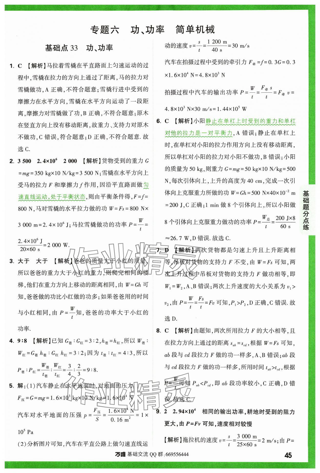 注:目前有些书本章节名称可能整理的还不是很完善,但都是按照顺序排列的,请同学们按照顺序仔细查找。练习册 2024年万唯中考基础题物理 答案主要是用来给同学们做完题方便对答案用的,请勿直接抄袭。