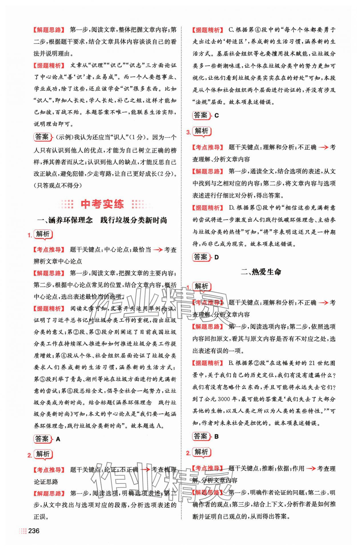 注:目前有些书本章节名称可能整理的还不是很完善,但都是按照顺序排列的,请同学们按照顺序仔细查找。练习册 2024年一本现代文阅读真题100篇中考语文 答案主要是用来给同学们做完题方便对答案用的,请勿直接抄袭。