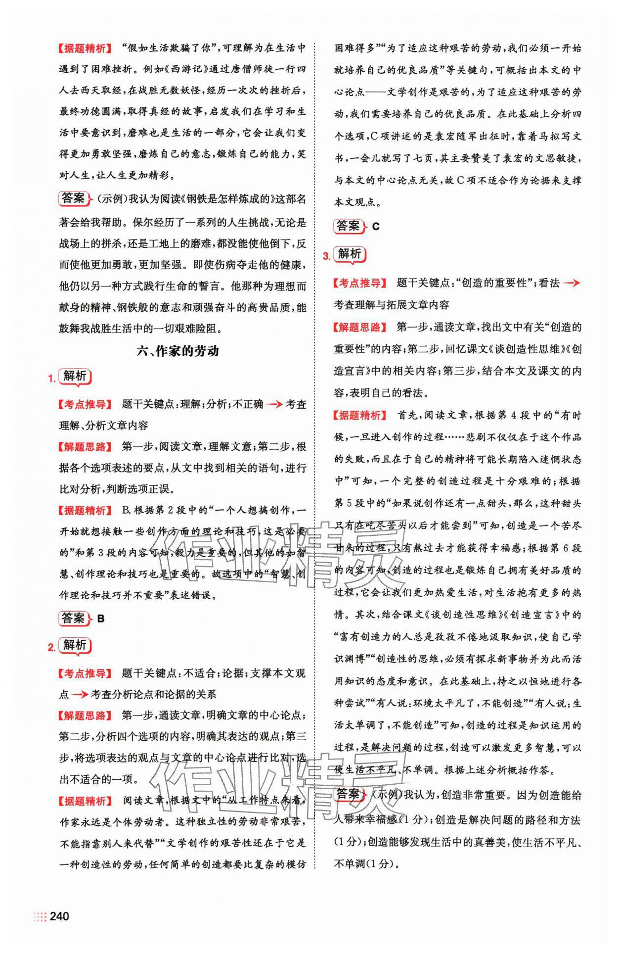 注:目前有些书本章节名称可能整理的还不是很完善,但都是按照顺序排列的,请同学们按照顺序仔细查找。练习册 2024年一本现代文阅读真题100篇中考语文 答案主要是用来给同学们做完题方便对答案用的,请勿直接抄袭。