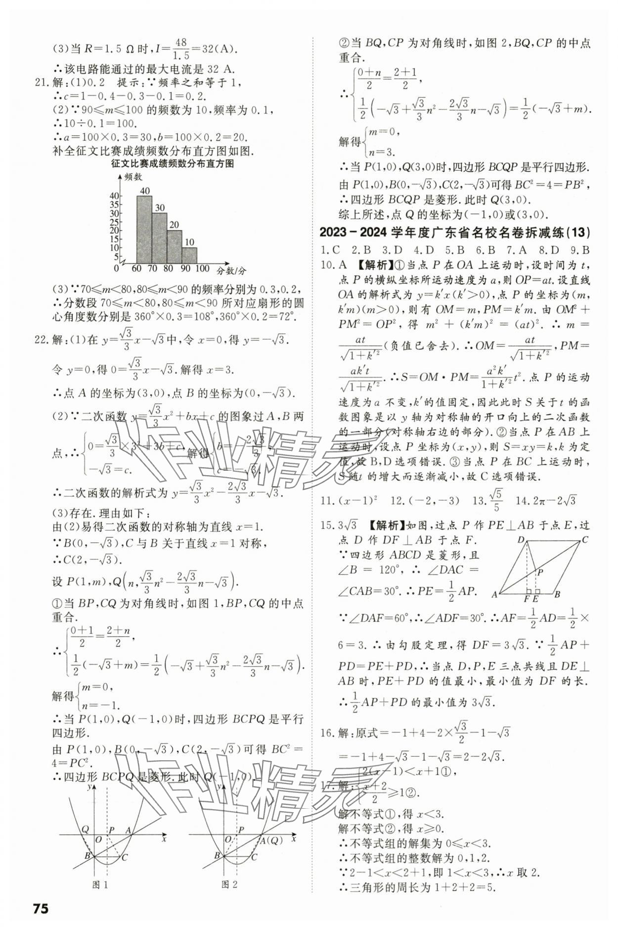 注:目前有些书本章节名称可能整理的还不是很完善,但都是按照顺序排列的,请同学们按照顺序仔细查找。练习册 2024年中考冲刺数学广东专版 答案主要是用来给同学们做完题方便对答案用的,请勿直接抄袭。