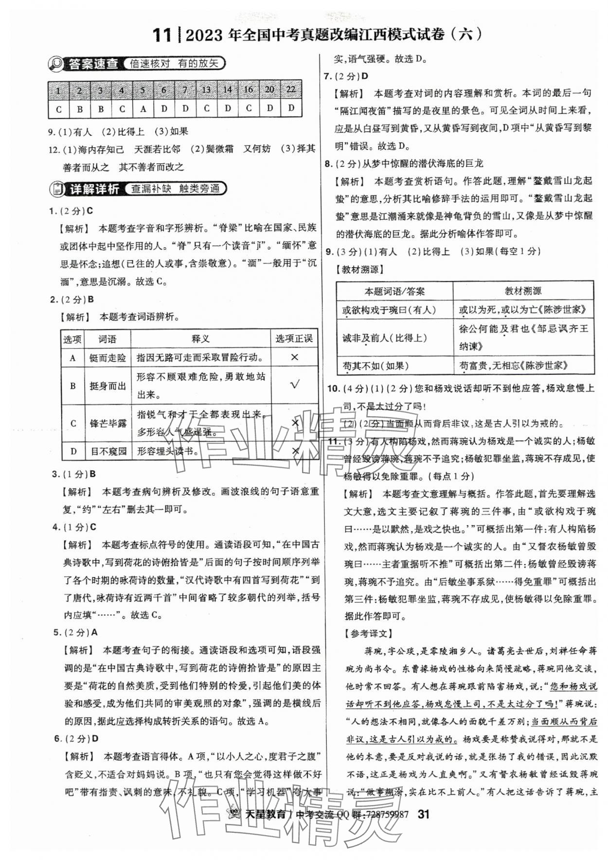 注:目前有些书本章节名称可能整理的还不是很完善,但都是按照顺序排列的,请同学们按照顺序仔细查找。练习册 2024年金考卷江西中考45套汇编语文 答案主要是用来给同学们做完题方便对答案用的,请勿直接抄袭。