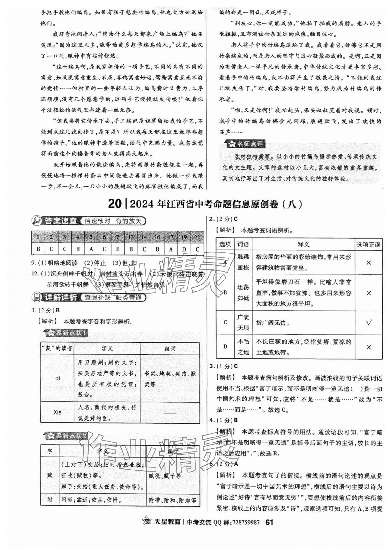 注:目前有些书本章节名称可能整理的还不是很完善,但都是按照顺序排列的,请同学们按照顺序仔细查找。练习册 2024年金考卷江西中考45套汇编语文 答案主要是用来给同学们做完题方便对答案用的,请勿直接抄袭。