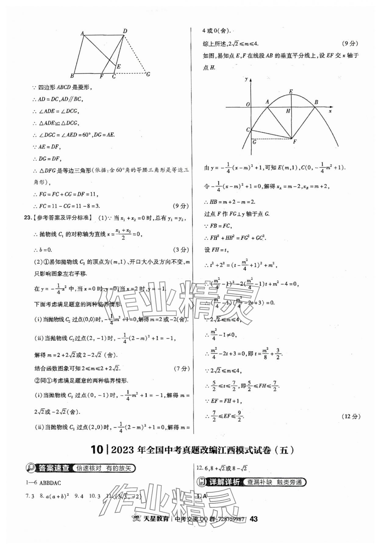 2024年金考卷江西中考45套汇编数学
