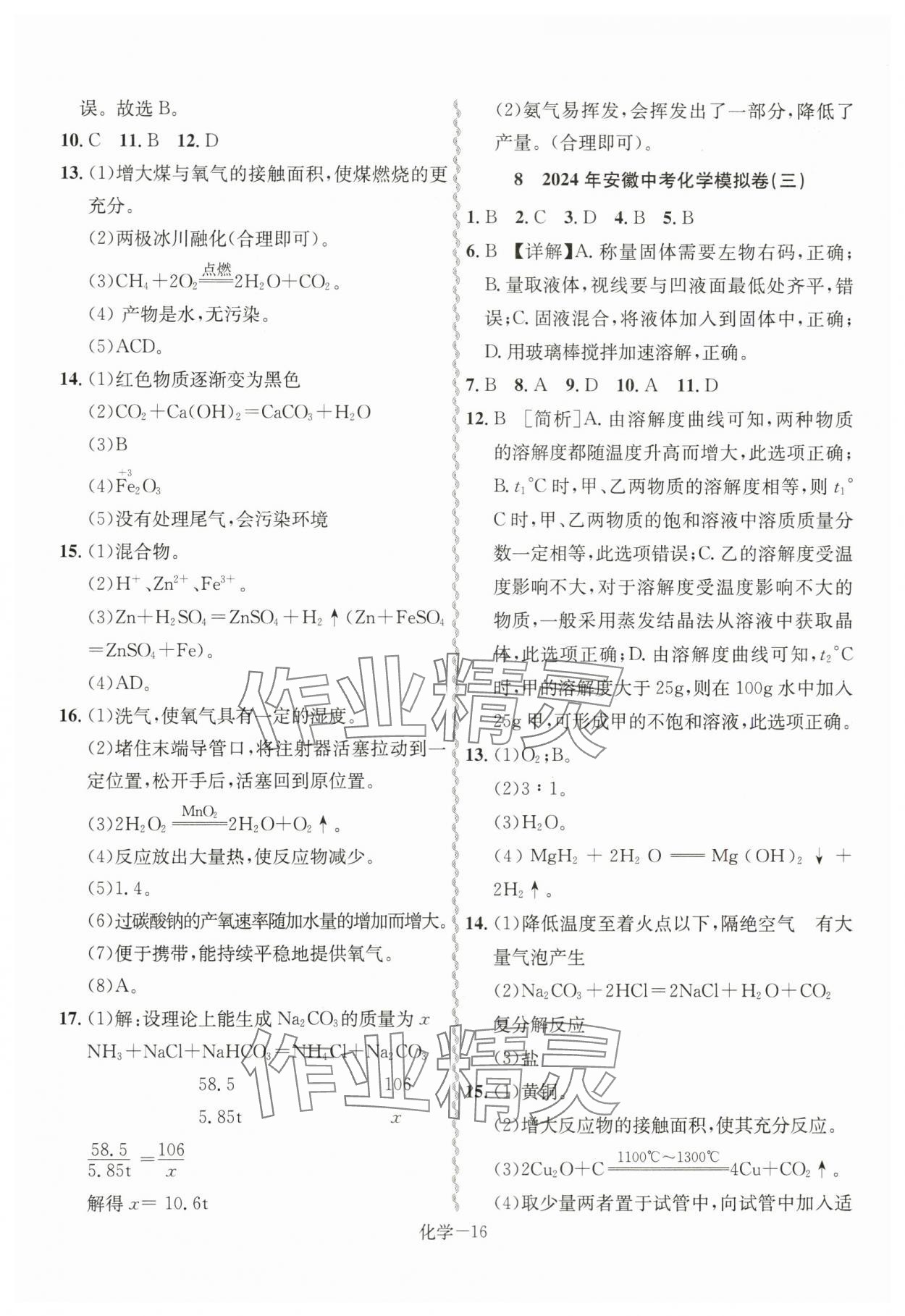 注:目前有些书本章节名称可能整理的还不是很完善,但都是按照顺序排列的,请同学们按照顺序仔细查找。练习册 2024年优等生中考试题精选化学安徽专版 答案主要是用来给同学们做完题方便对答案用的,请勿直接抄袭。