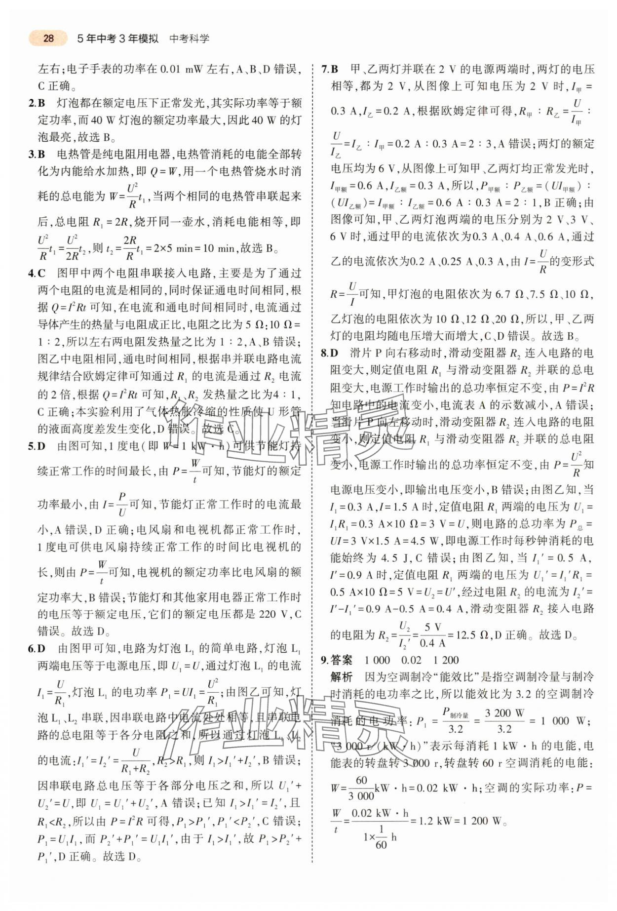 《2024年5年中考3年模拟九年级科学浙江专用》