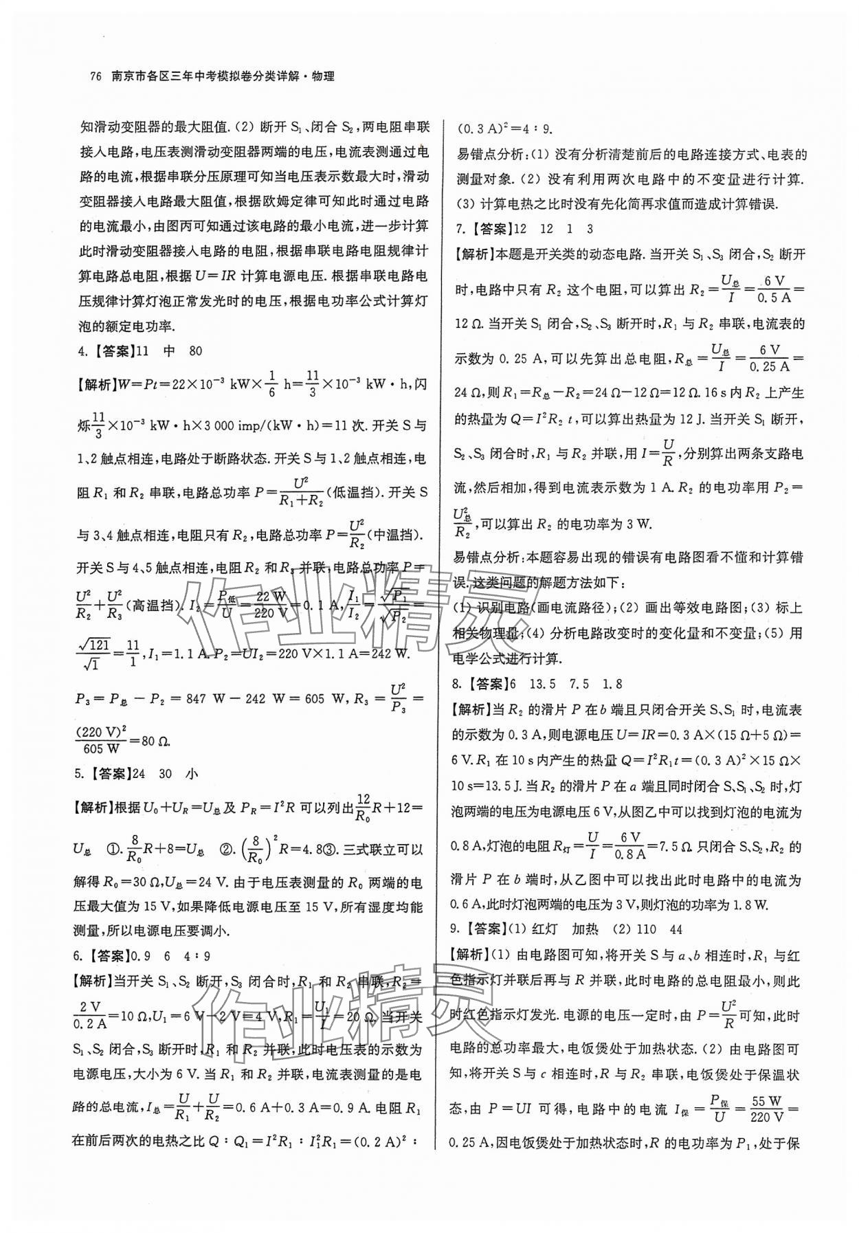 《2024年南京市各区三年中考模拟卷分类详解物理》
