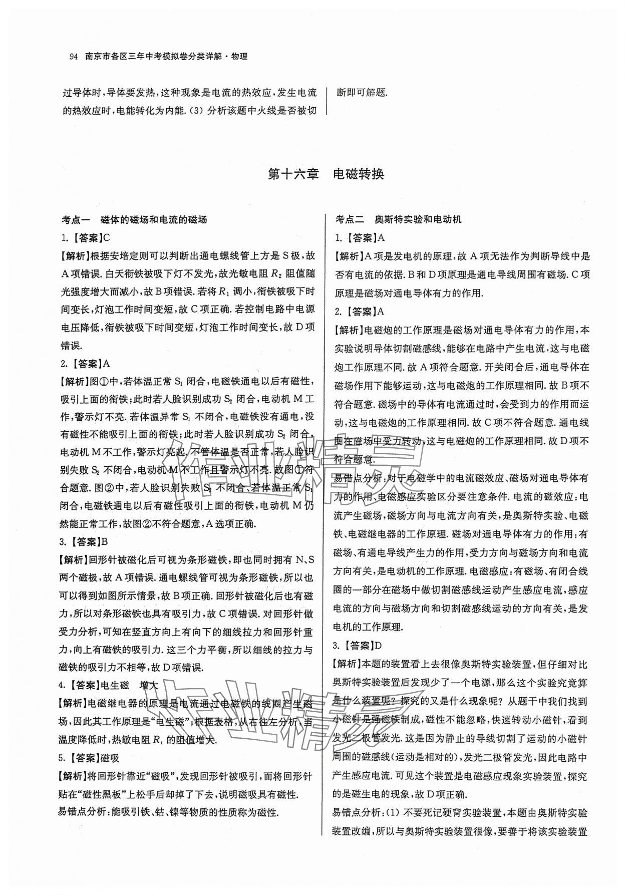 注:目前有些书本章节名称可能整理的还不是很完善,但都是按照顺序排列的,请同学们按照顺序仔细查找。练习册 2024年南京市各区三年中考模拟卷分类详解物理 答案主要是用来给同学们做完题方便对答案用的,请勿直接抄袭。