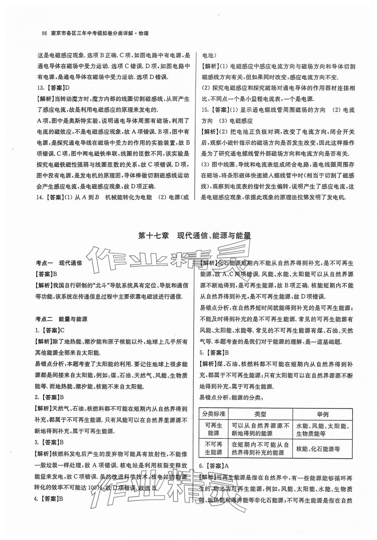 注:目前有些书本章节名称可能整理的还不是很完善,但都是按照顺序排列的,请同学们按照顺序仔细查找。练习册 2024年南京市各区三年中考模拟卷分类详解物理 答案主要是用来给同学们做完题方便对答案用的,请勿直接抄袭。