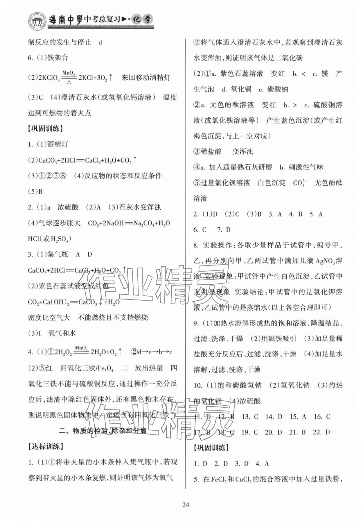 注:目前有些书本章节名称可能整理的还不是很完善,但都是按照顺序排列的,请同学们按照顺序仔细查找。练习册 2024年海南中学中考总复习化学人教版 答案主要是用来给同学们做完题方便对答案用的,请勿直接抄袭。