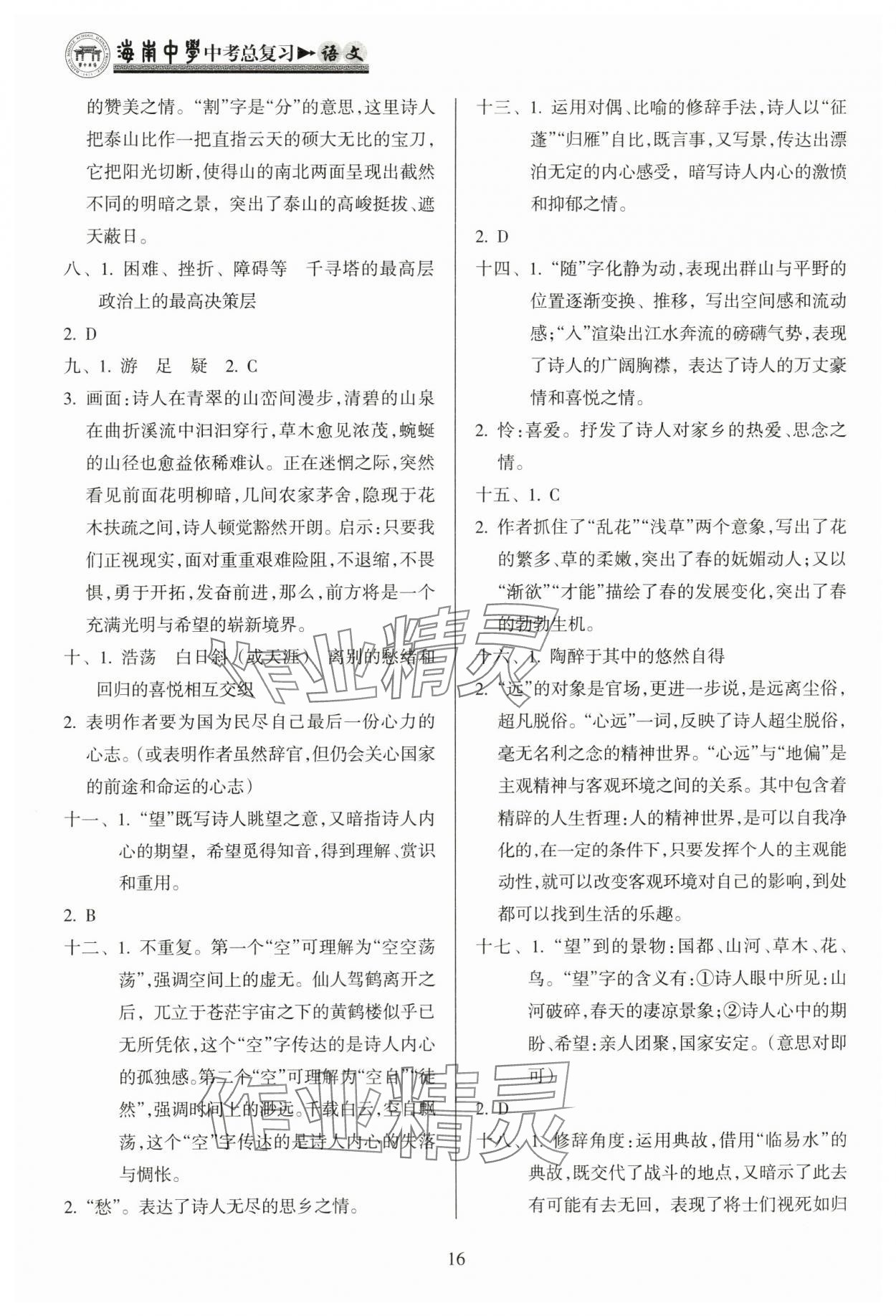 注:目前有些书本章节名称可能整理的还不是很完善,但都是按照顺序排列的,请同学们按照顺序仔细查找。练习册 2024年海南中学中考总复习语文人教版 答案主要是用来给同学们做完题方便对答案用的,请勿直接抄袭。