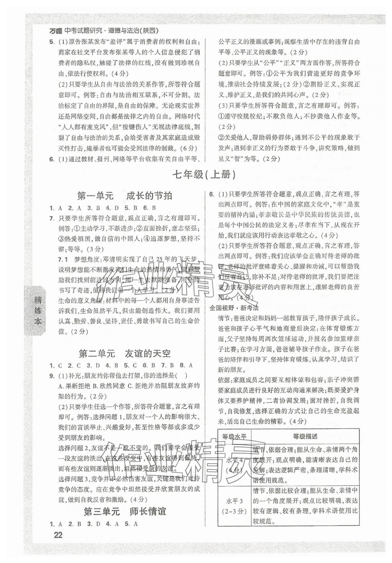 注:目前有些书本章节名称可能整理的还不是很完善,但都是按照顺序排列的,请同学们按照顺序仔细查找。练习册 2024年万唯中考试题研究道德与法治中考人教版陕西专版 答案主要是用来给同学们做完题方便对答案用的,请勿直接抄袭。