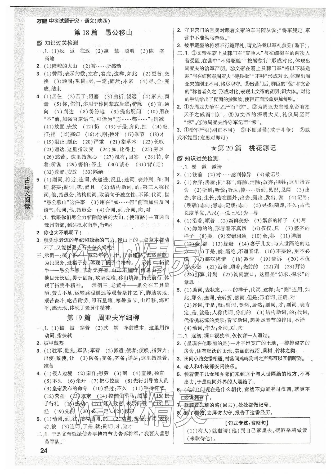 2024年万唯中考试题研究语文陕西专版
